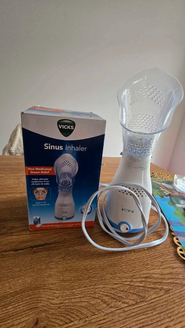 10Get soothing relief from congestion with the Vicks Sinus Inhaler, offering non-medicated steam therapy to help alleviate sinus and allergy symptoms. This used Vicks Sinus Inhaler is designed to provide targeted delivery of warm, moist air to nasal passages, easing congestion and promoting easier breathing. Key features include: * Soothing steam therapy for sinus relief * Helps alleviate congestion and allergy symptoms * Targeted delivery to nasal passages * Easy to use and clean This is an opportunity to grab a great deal on this Vicks Sinus Inhaler. If you see this advertisement, it is still available for purchase!