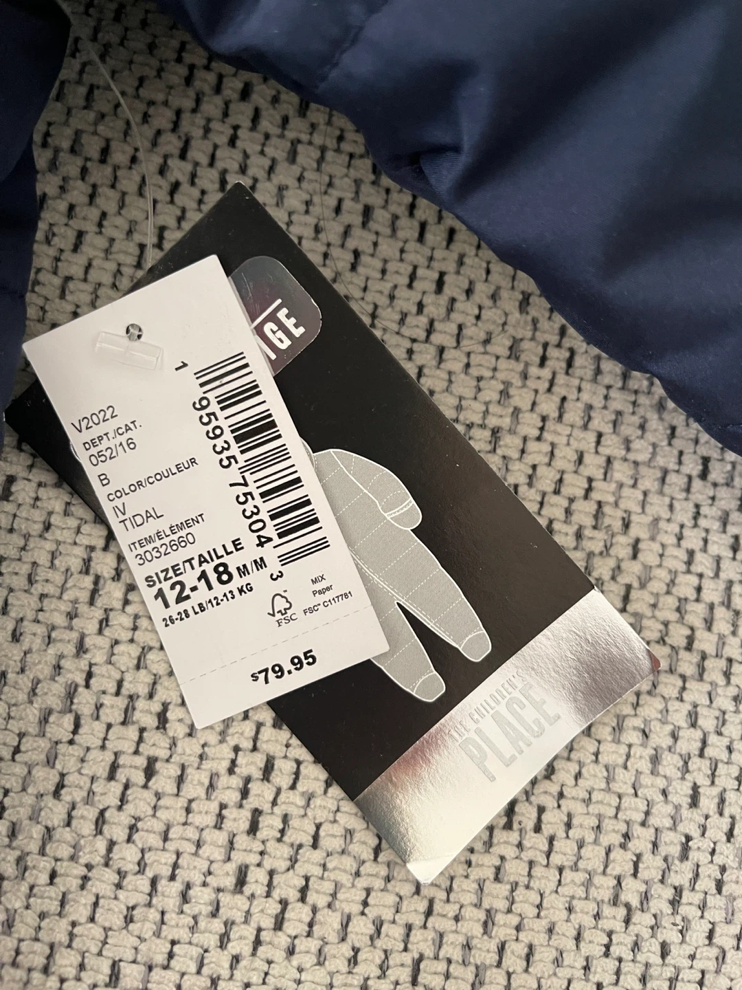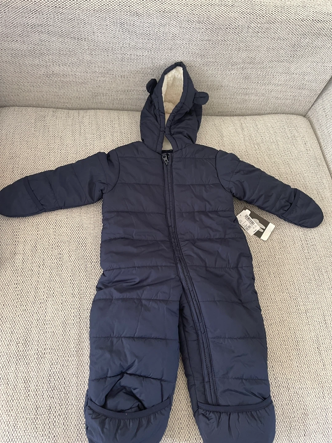 This cozy snowsuit from The Children's Place is perfect for keeping your little one warm this winter! It's a size 12-18 months and in a lovely navy blue colour. Originally bought for $79.95!