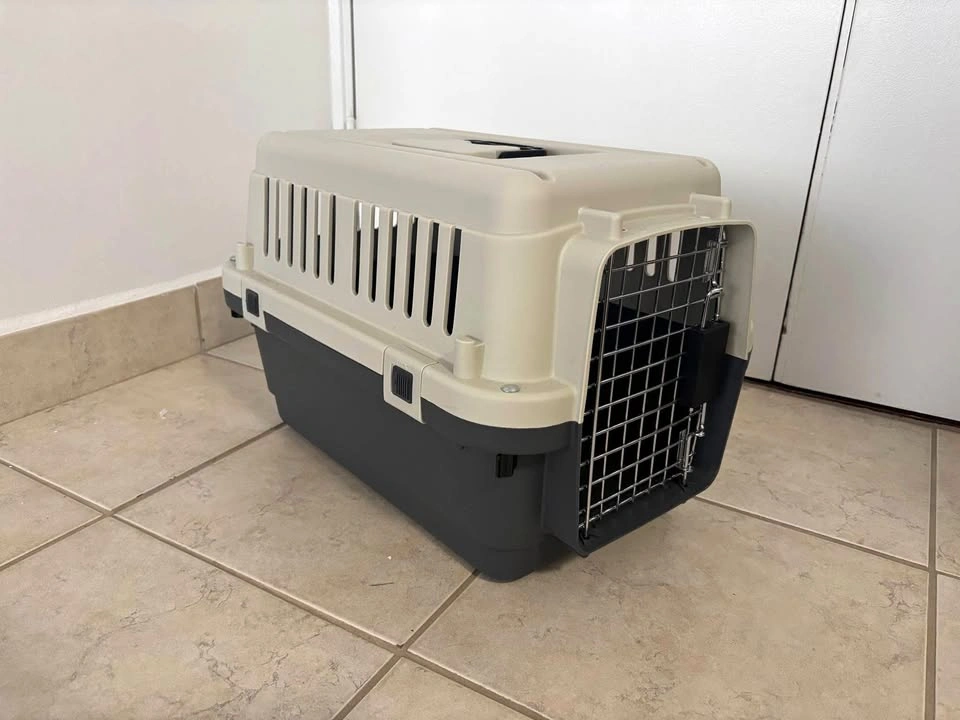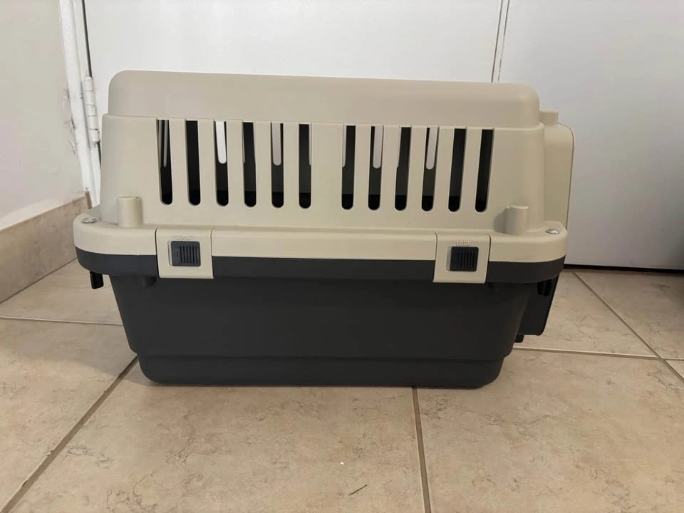 15Hard plastic cat or small dog carrier. Can be opened at the door or by taking the top off. About 20 inches long and 12 inches wide and tall. Used once to take my cat home. Pickup near York Mills