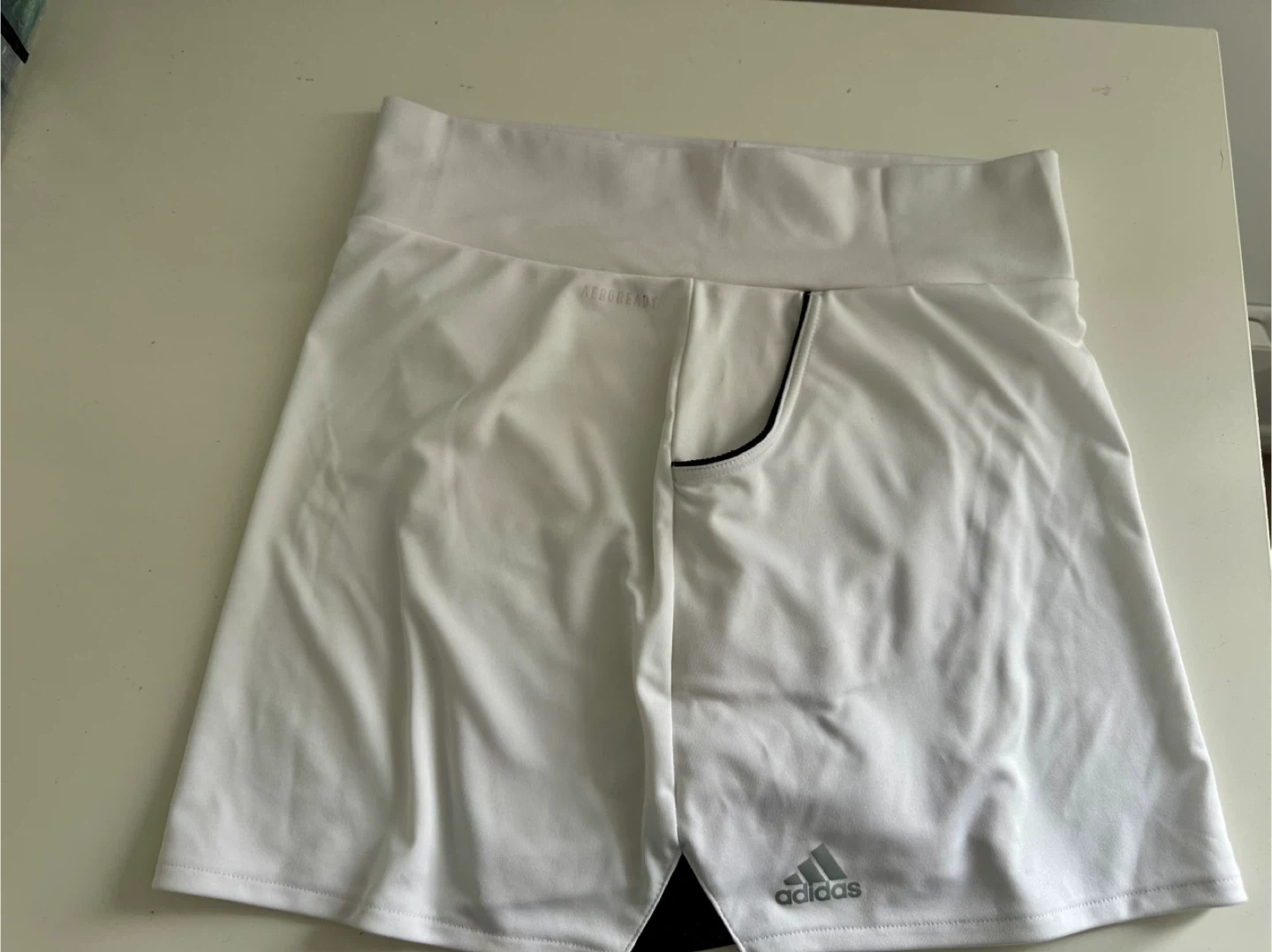 Selling a white Adidas tennis skirt. It's in great condition and perfect for hitting the courts or just a casual day out! The skirt is made in Thailand.