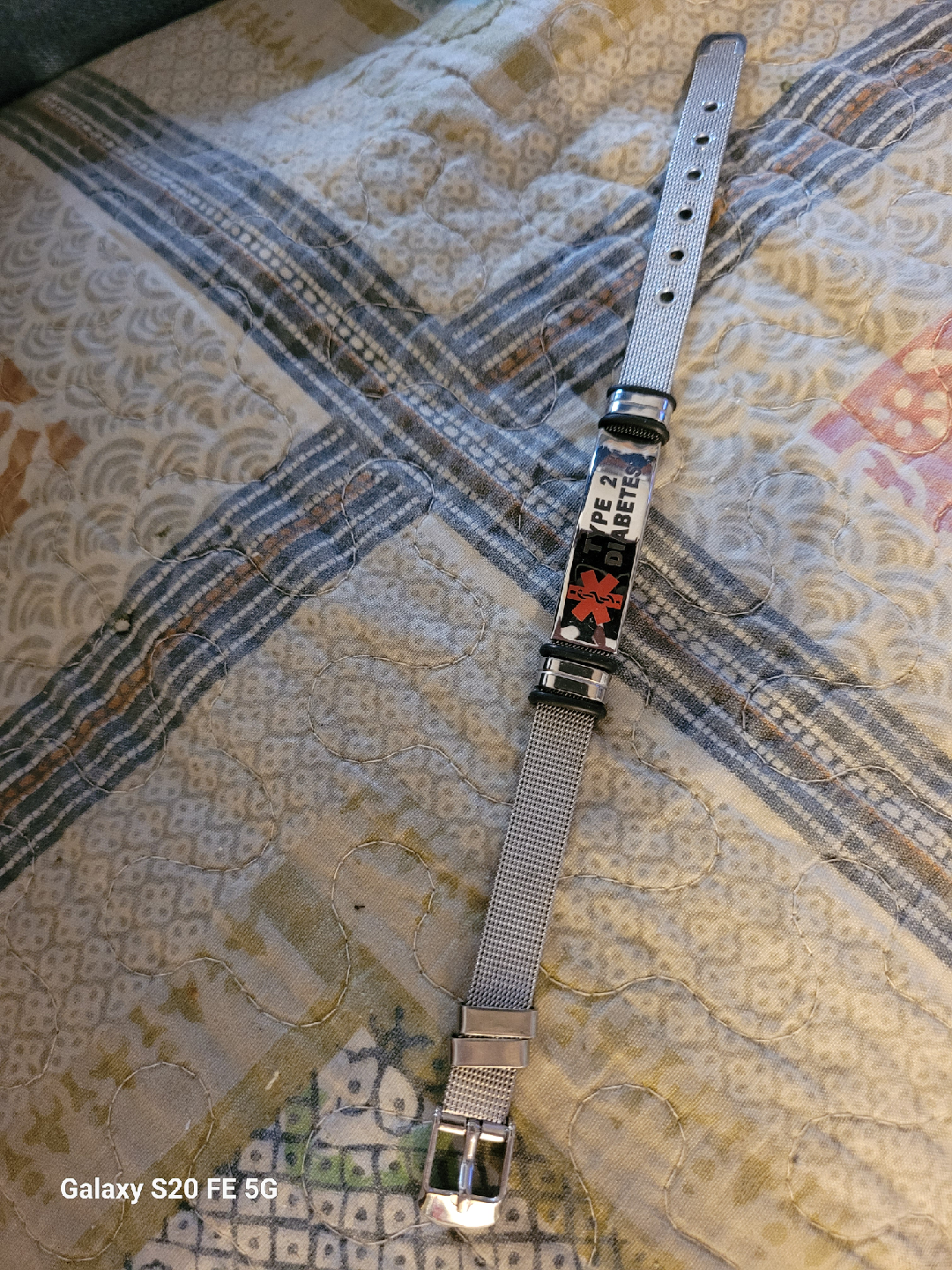 Selling a medical alert bracelet indicating Type 2 Diabetes. It's in good condition and ready to use. Perfect for ensuring your health information is readily available in case of an emergency