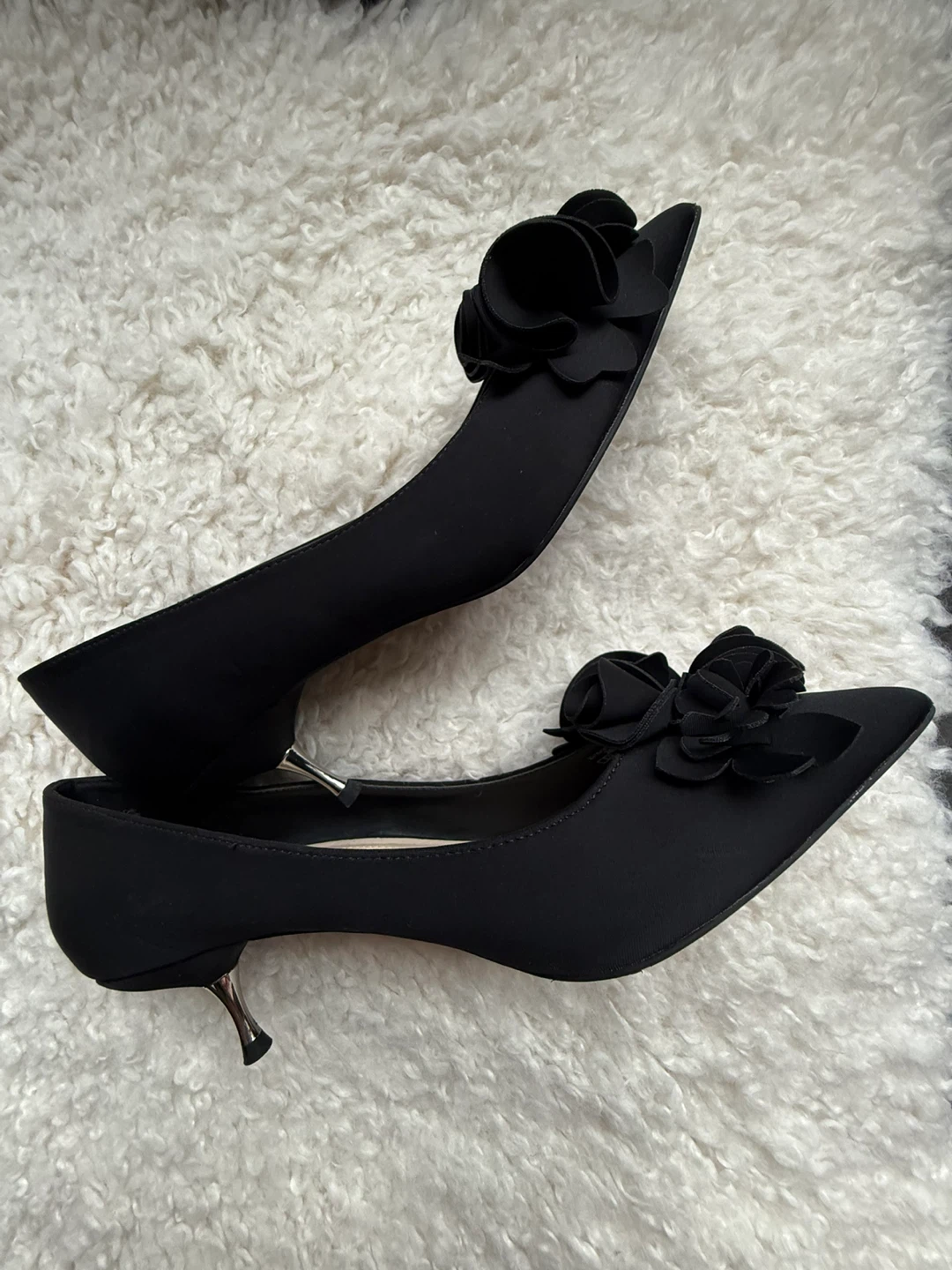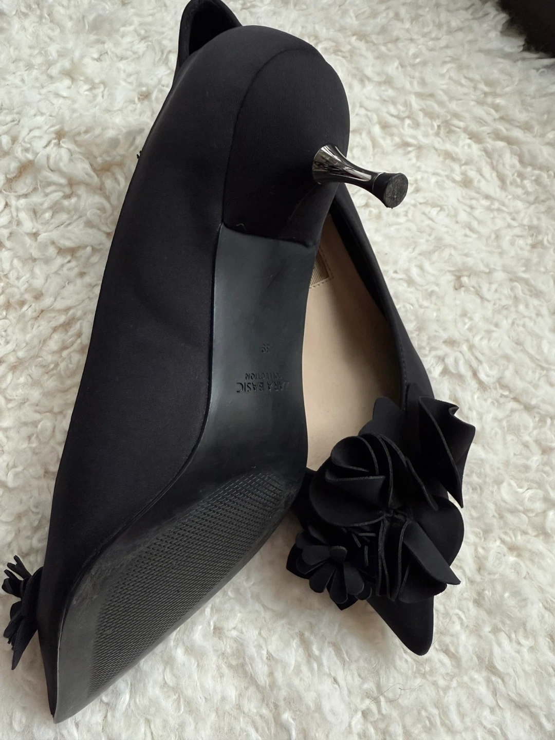 Selling a pair of Zara Basic black heels. They're a size 39 and feature a cute flower detail on the front. Perfect for dressing up an outfit!