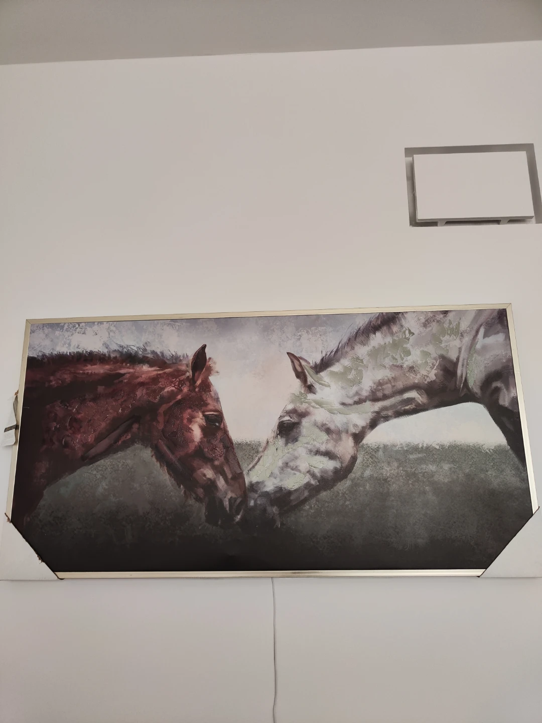A beautiful framed wall art piece featuring two horses! It's in great condition and would look lovely in any room of the house