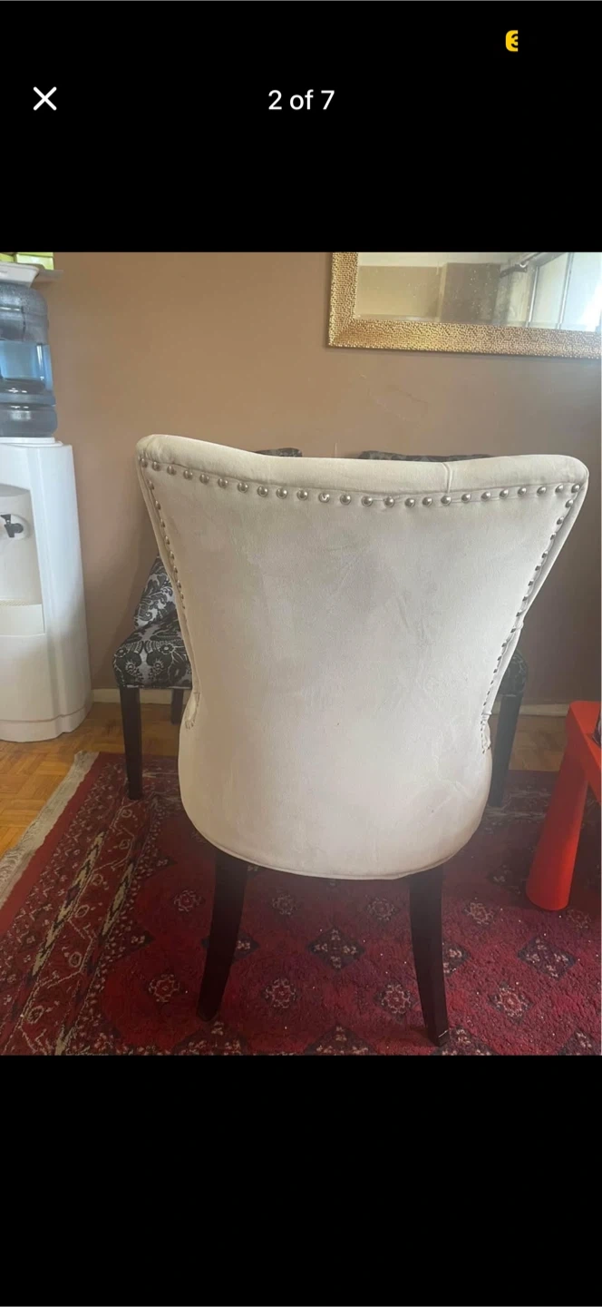 • 2 chairs in solid cream with classic button detailing — timeless and sophisticated.