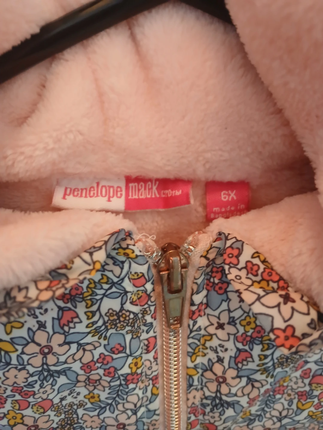 🥕Here's a Penelope Mack puffer jacket in size 6X. It has a cute floral print on the outside and a soft, plush lining inside to keep your little one cozy and warm. Perfect for those chilly days!