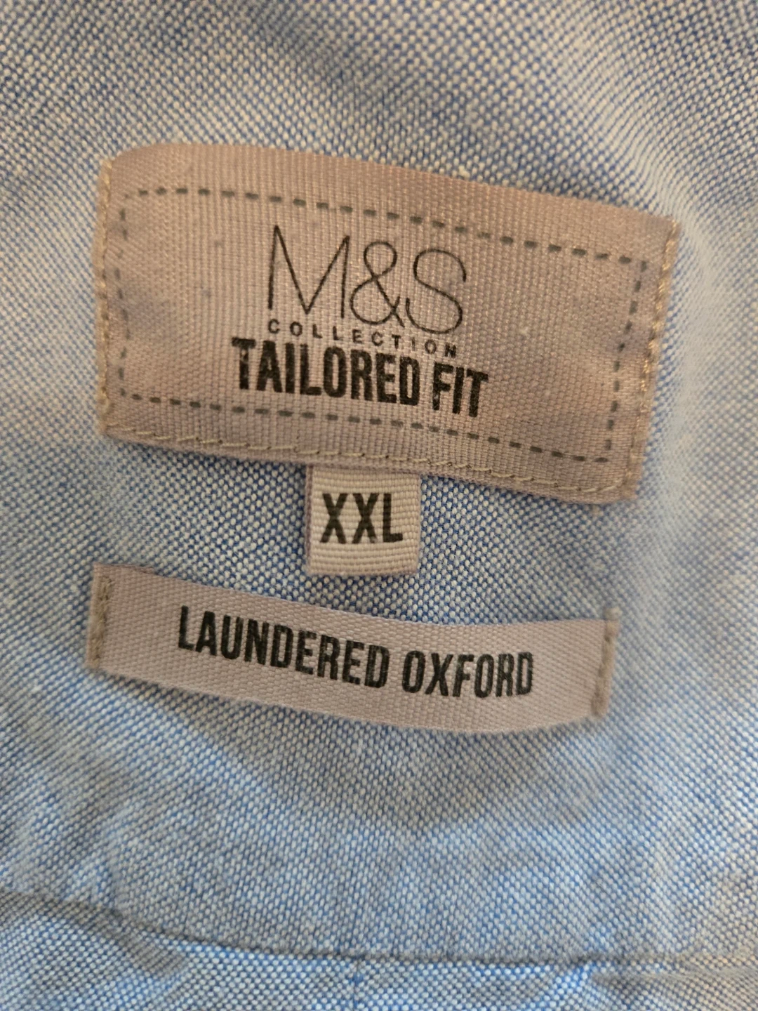 81Classic light blue Oxford shirt from M&S (Marks & Spencer). This is a Tailored Fit in size XXL. It's been laundered and is ready to wear!