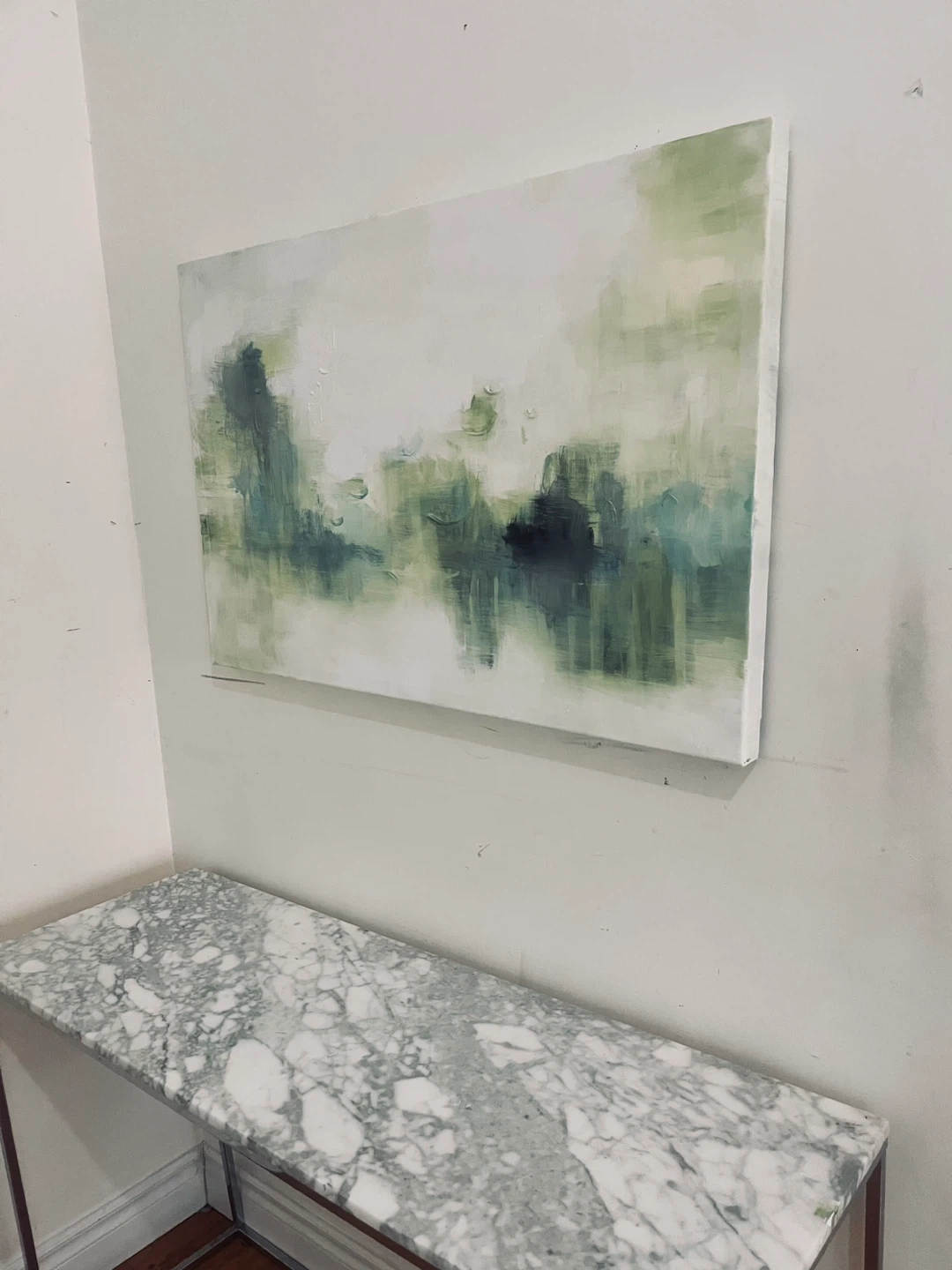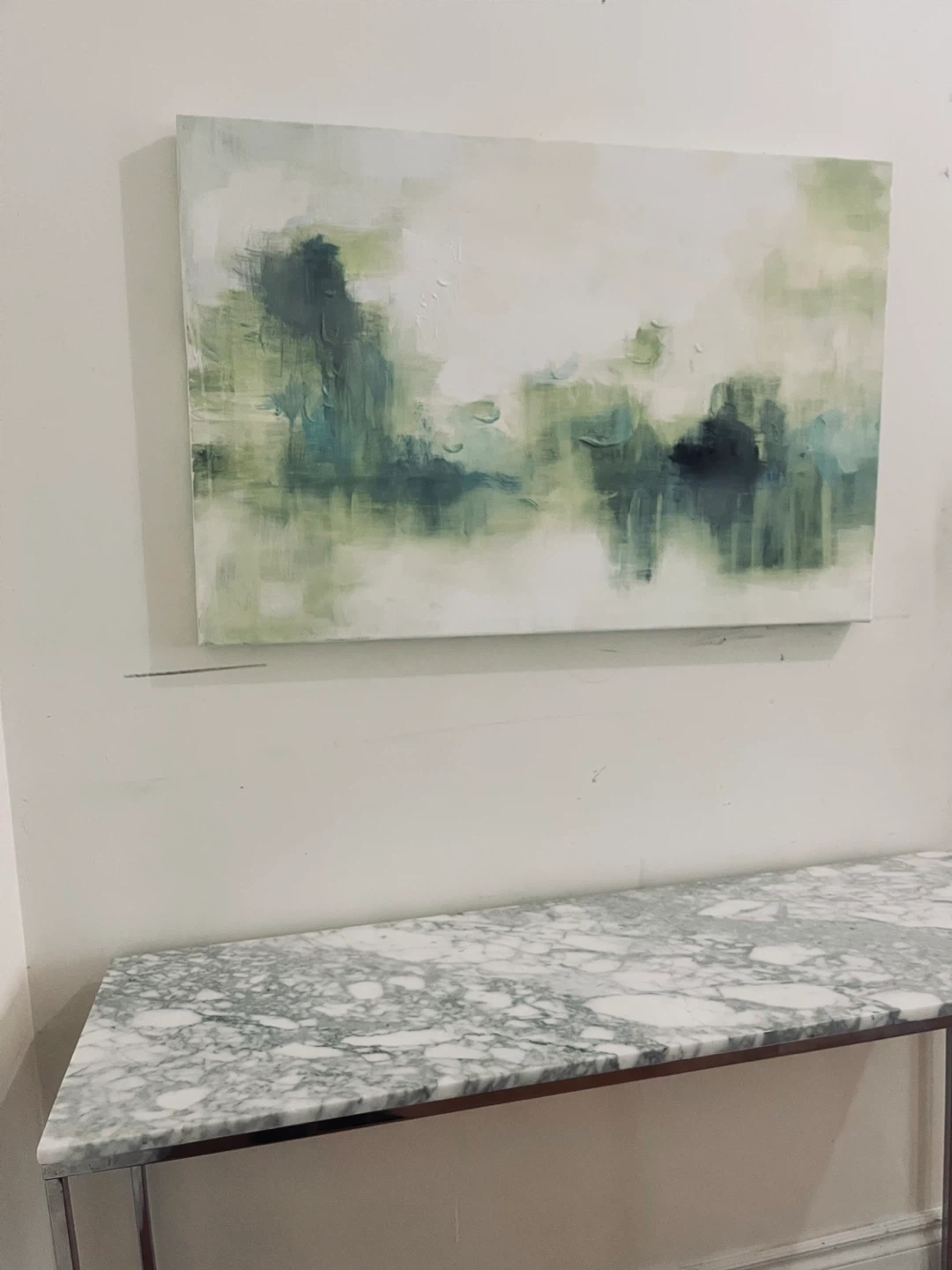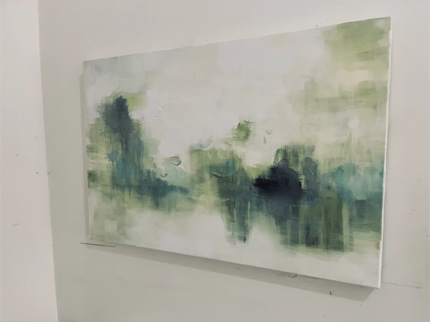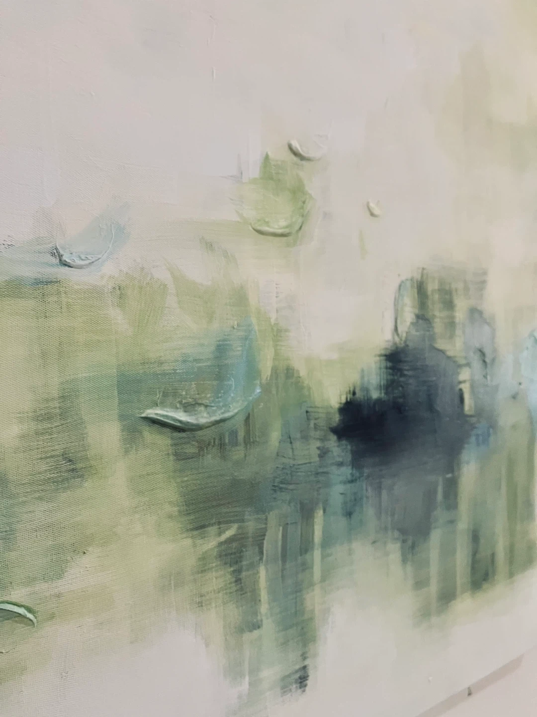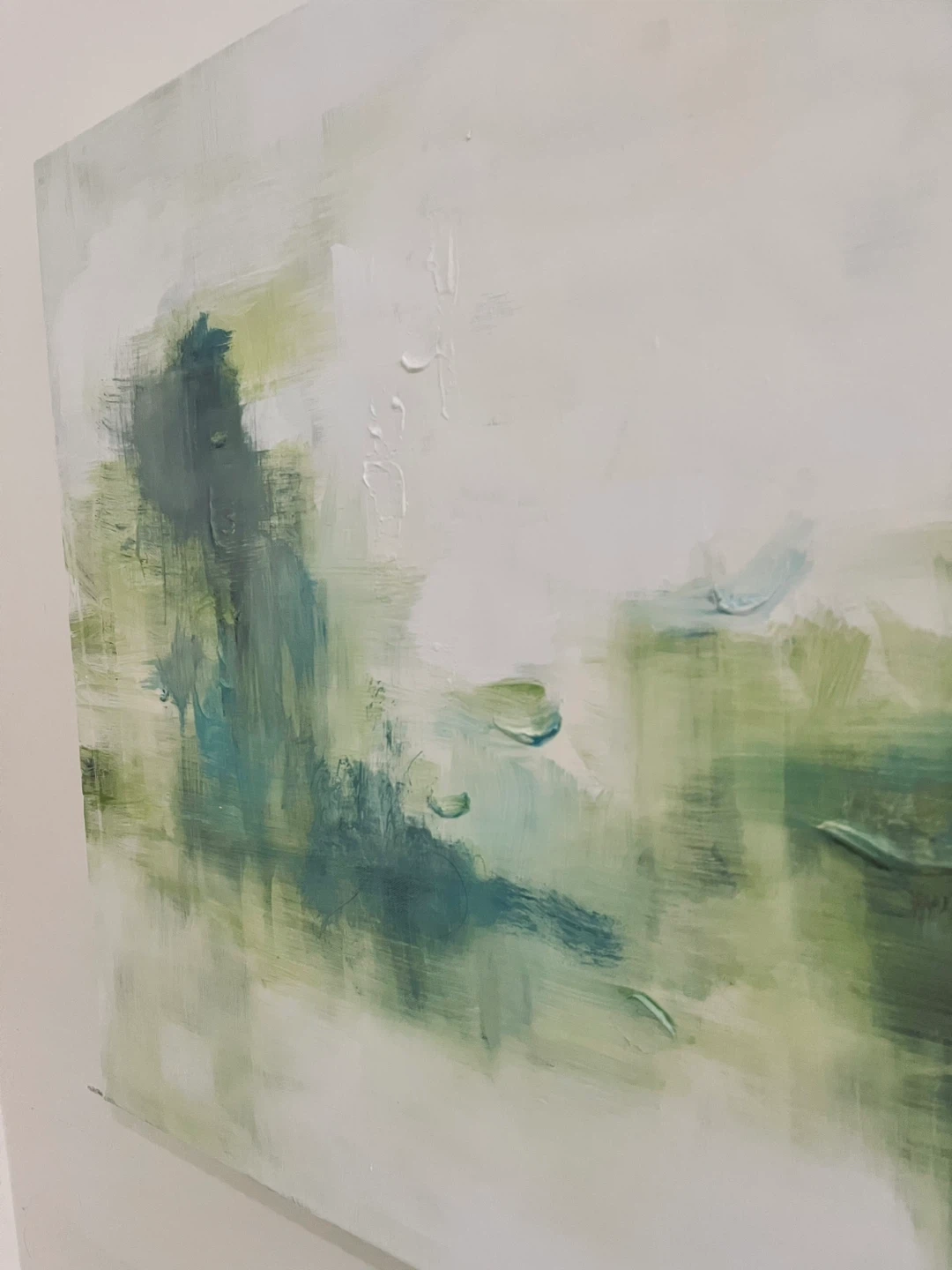 Selling an abstract painting featuring shades of green and white with textured brushwork, this is an original painting not a print.