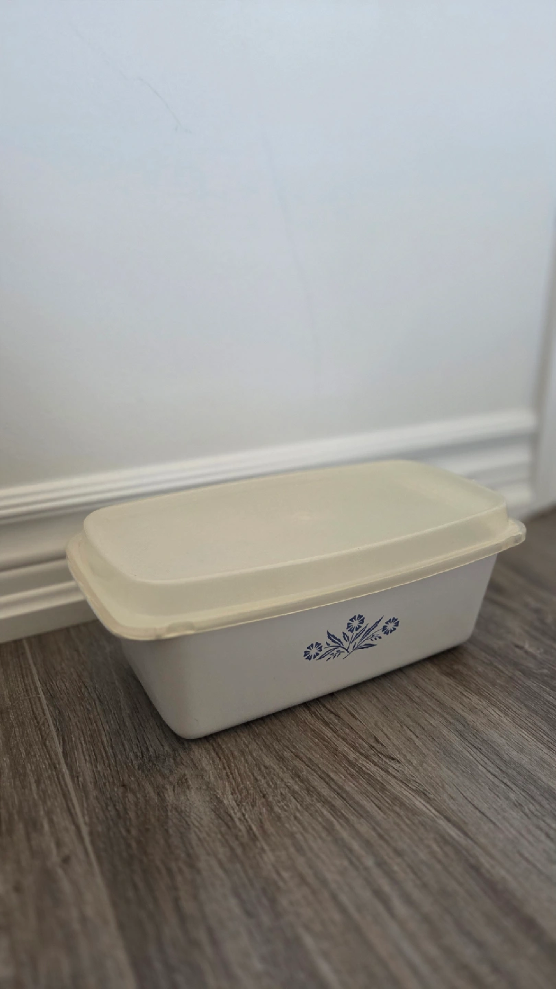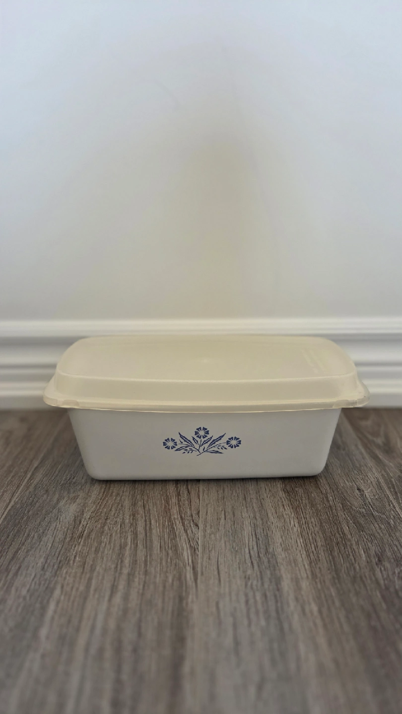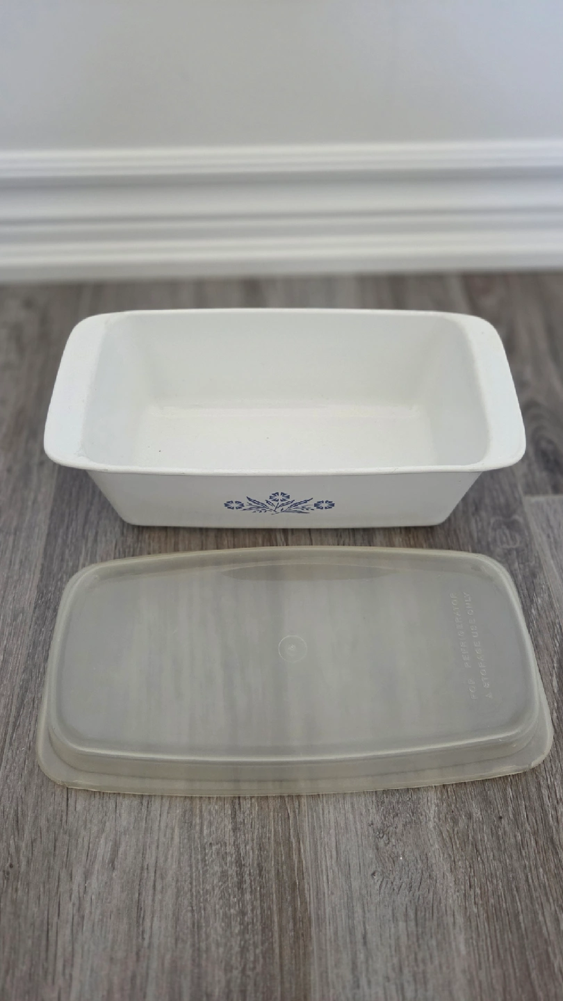 Selling a vintage CorningWare loaf pan with a lid! It features the Blue Cornflower pattern, a classic design. Perfect for baking and serving your favourite loaf recipes. It’s in great condition and ready for a new home!