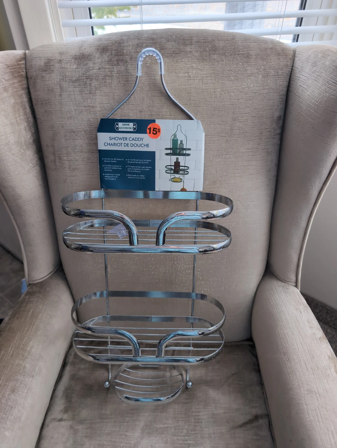 Selling a Home Aesthetics shower caddy! It's perfect for keeping your shower organized. It mounts on all types of shower heads and includes suctions to prevent the caddy from swaying. It's made from metal and is rust resistant