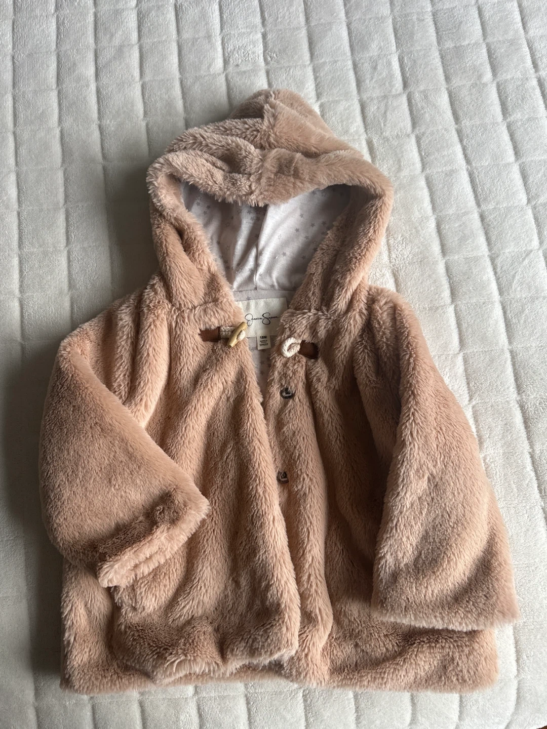 10Selling a super cute and cozy Jessica Simpson baby faux fur hooded coat! It's in great condition and perfect for keeping your little one warm. The size is 18M.
