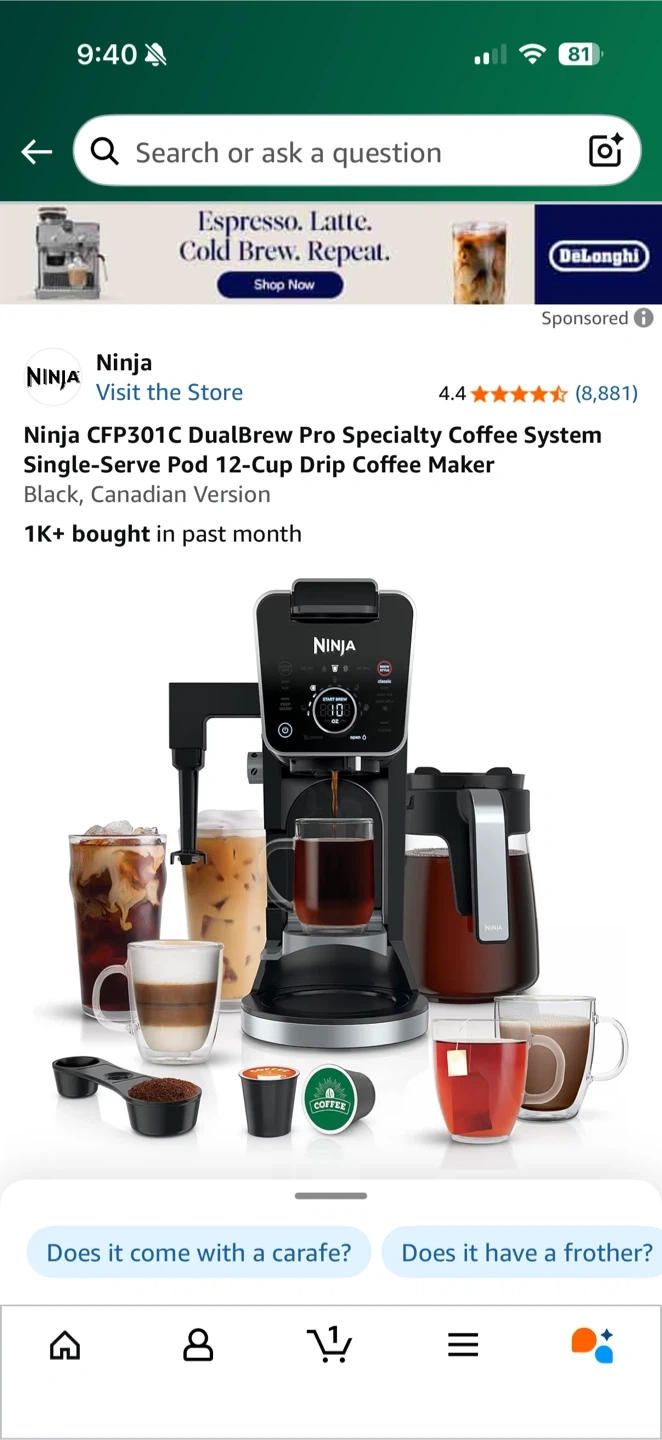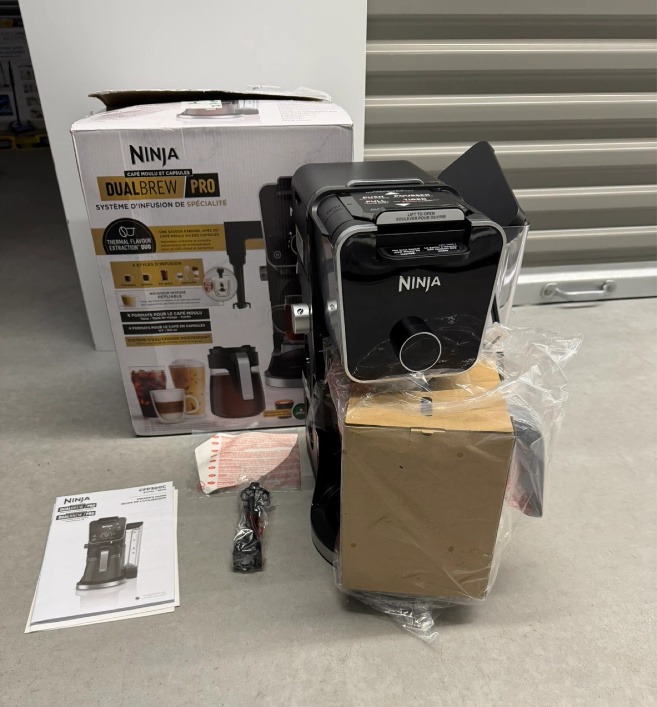 - Ninja DualBrew Pro CFP300C coffee maker (compatible with pods and grounds)