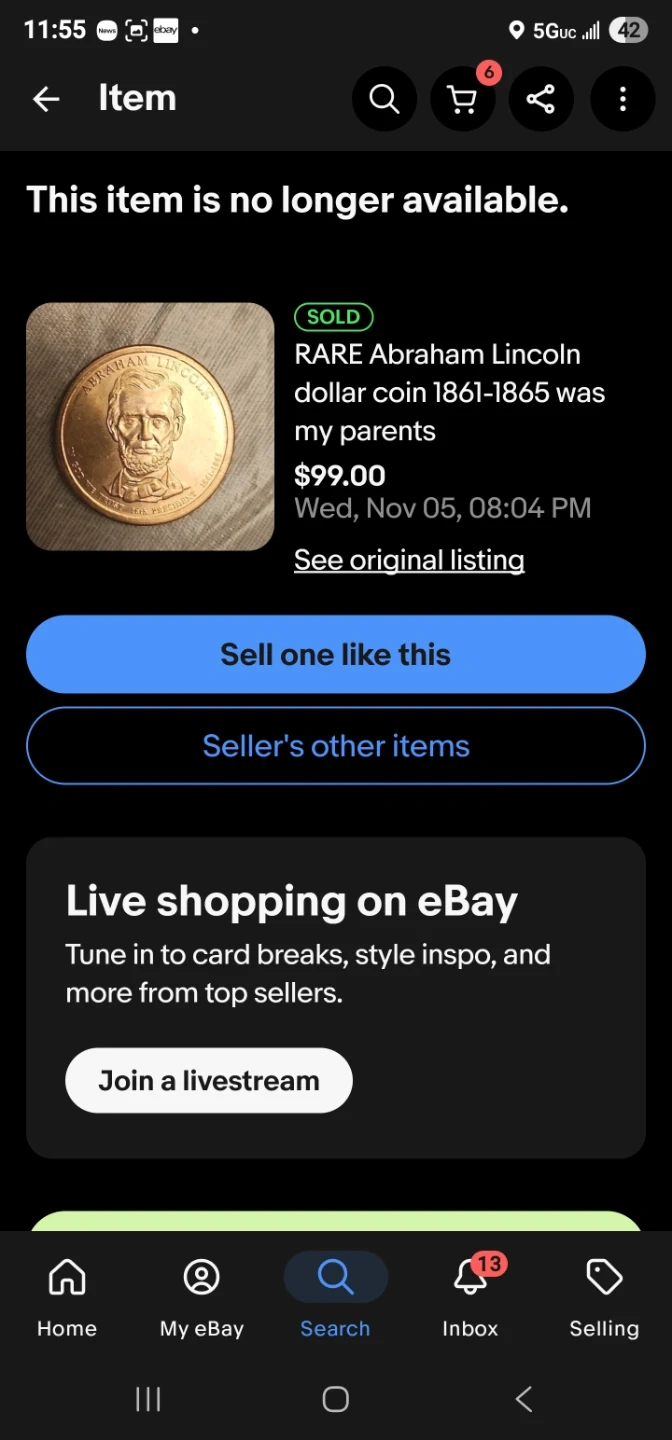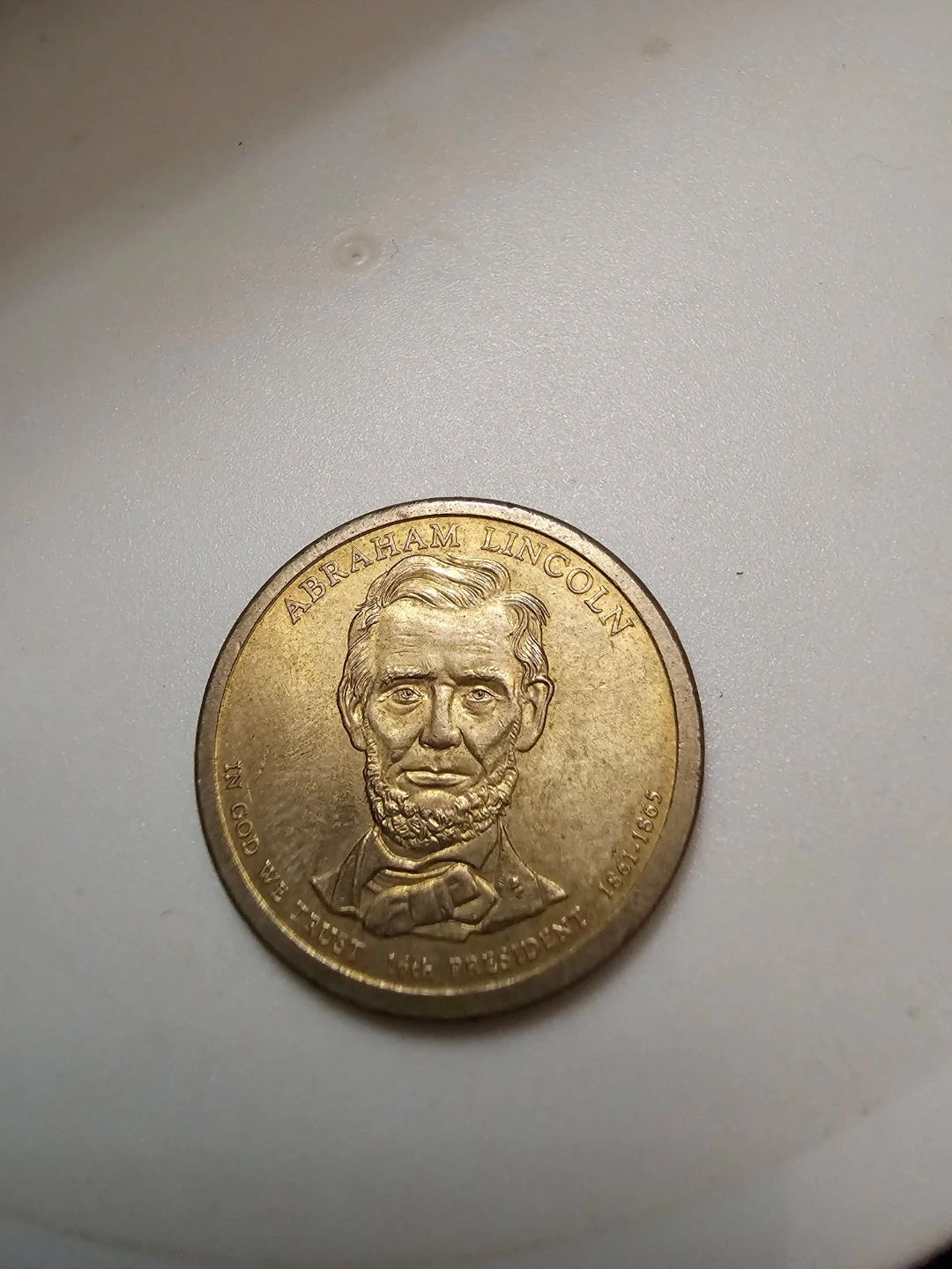 Selling an Abraham Lincoln dollar coin from 1861-1865. It features Abraham Lincoln on one side and the Statue of Liberty on the other. Great for collectors!