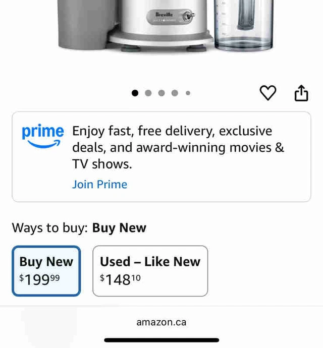 I'm selling a used Breville Juice Fountain, model JE98XL, a powerful 850W juicer perfect for making fresh and healthy juices at home. This juicer is in good condition and comes with all its original parts, including the pulp container and juice jug. It's easy to use and clean, making it a great addition to any kitchen.