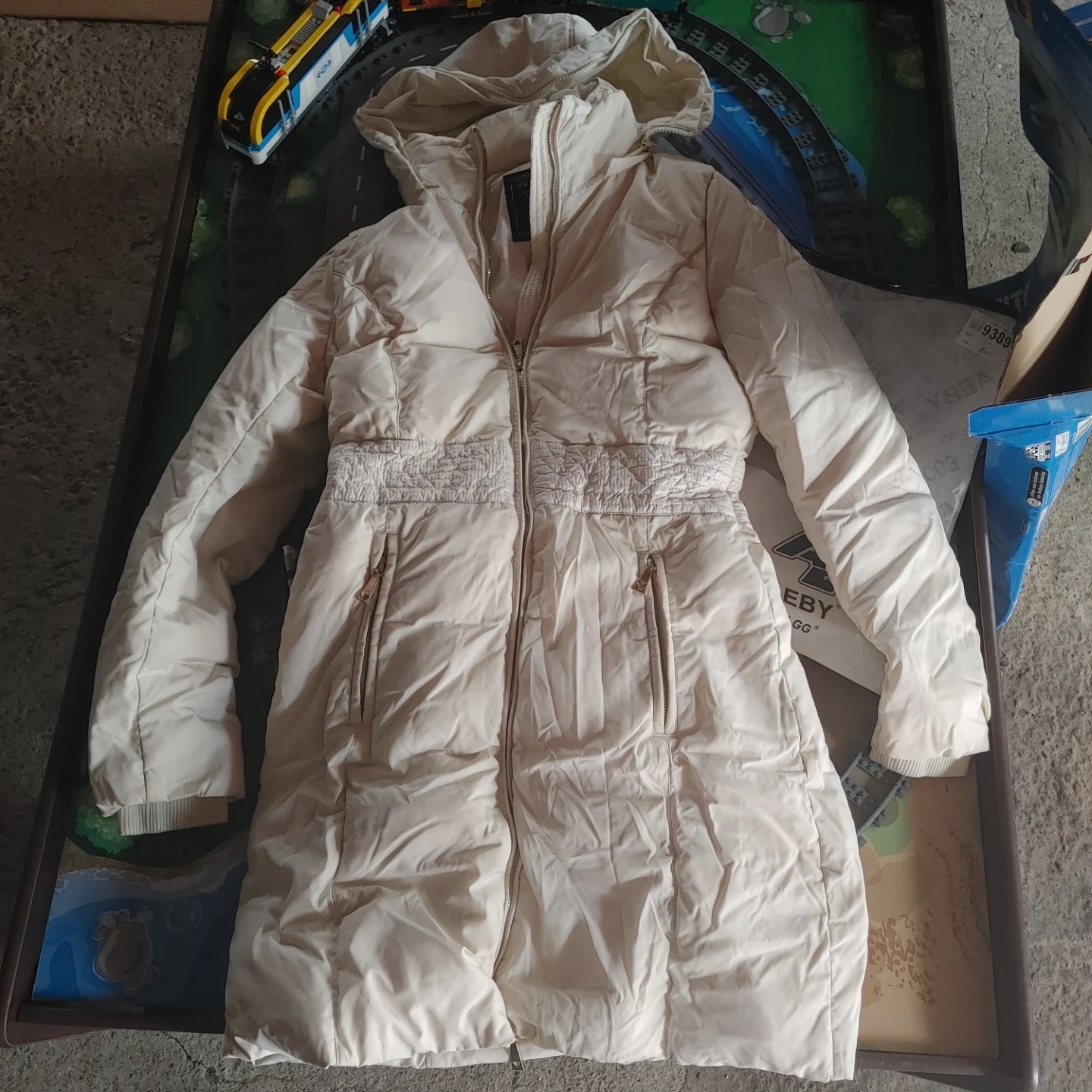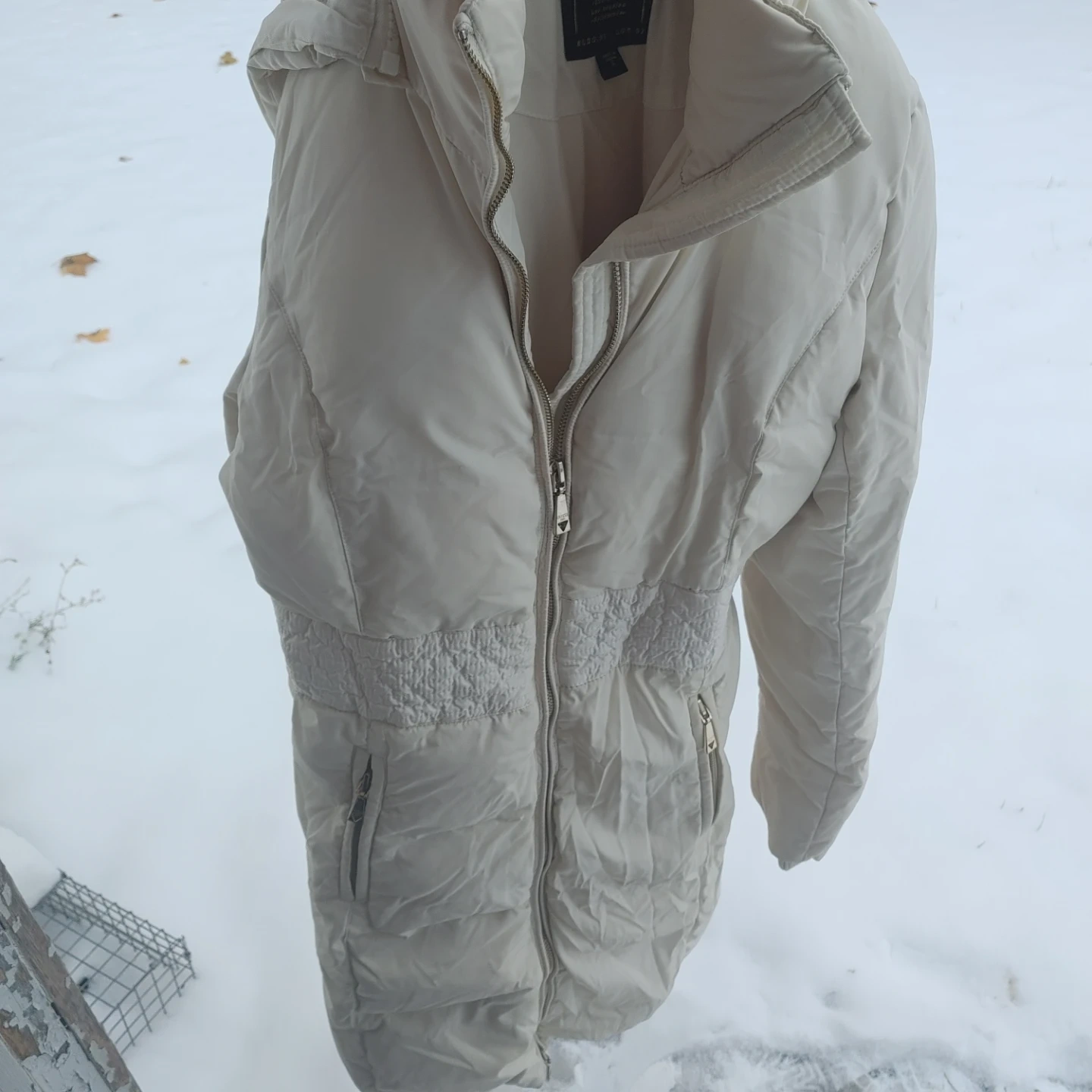 Selling a Guess women's puffer coat in size small. Two way zipper closure, 2 pokets, can be worn during winter