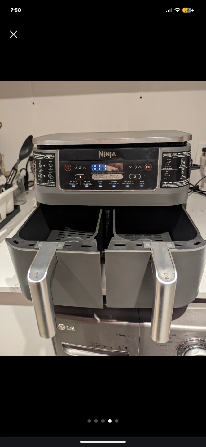 Selling a Ninja Foodi 6-in-1, 18-quart, 2-Basket Air Fryer with DualZone Technology. It's in great condition and ready for a new home! The original price was $229.99. It features two individual 4-quart cooking baskets with removable crisper plates that are dishwasher safe