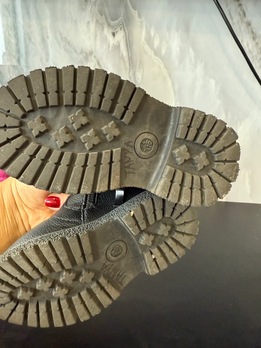 These cute black ankle boots are perfect for your little one! They feature a zipper on the side for easy on and off. The size EU 24, and they're in great condition for all their adventures