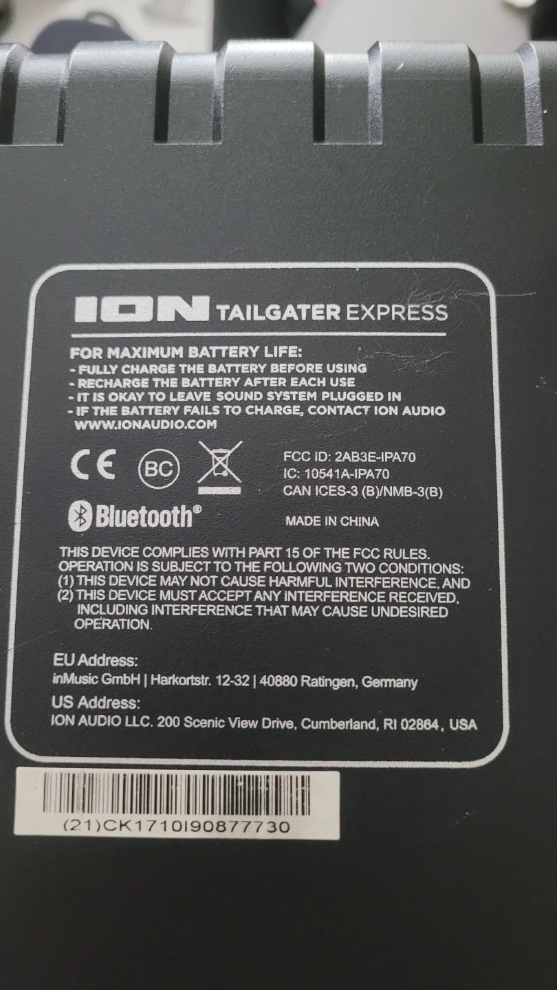 Selling an ION Tailgater Express portable Bluetooth speaker! It's in great shape and ready for your next get-together or outdoor adventure. This speaker is perfect for playing music wirelessly from your phone or other Bluetooth-enabled device
