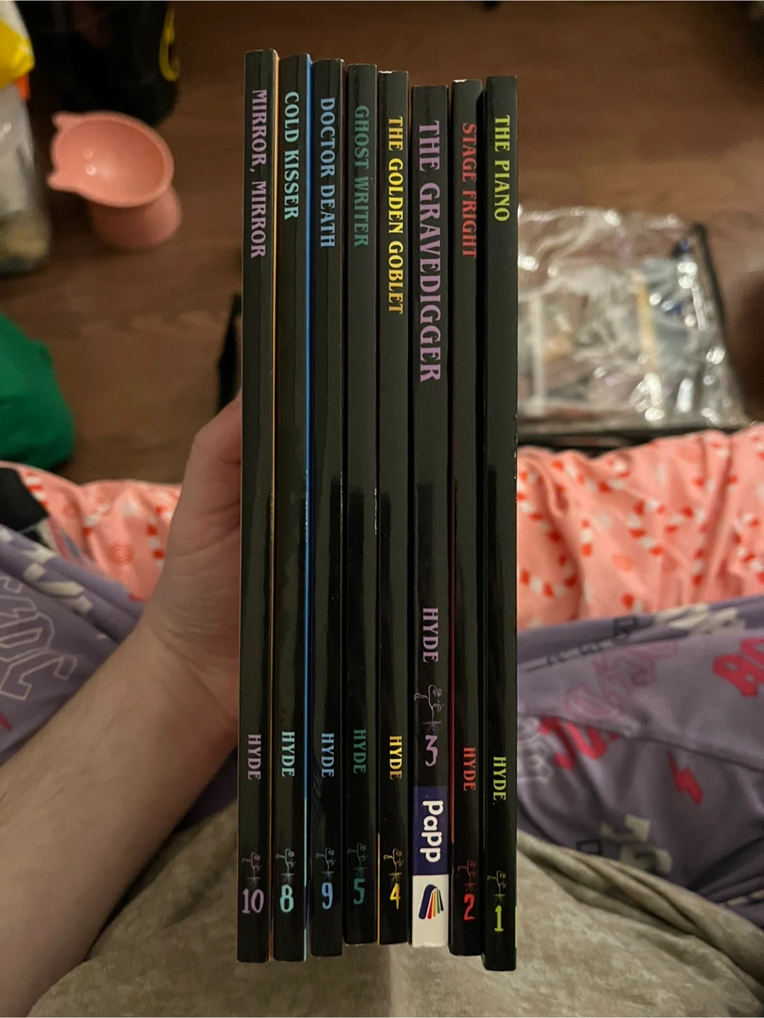 123Selling the Creepers book series by Edgar J. Hyde! Includes: - Mirror, Mirror (10) - Cold Kisser (9) - Doctor Death (8) - Ghost Writer (5) - The Golden Goblet (4) - The Gravedigger (3) - Stage Fright (2) - The Piano (1)