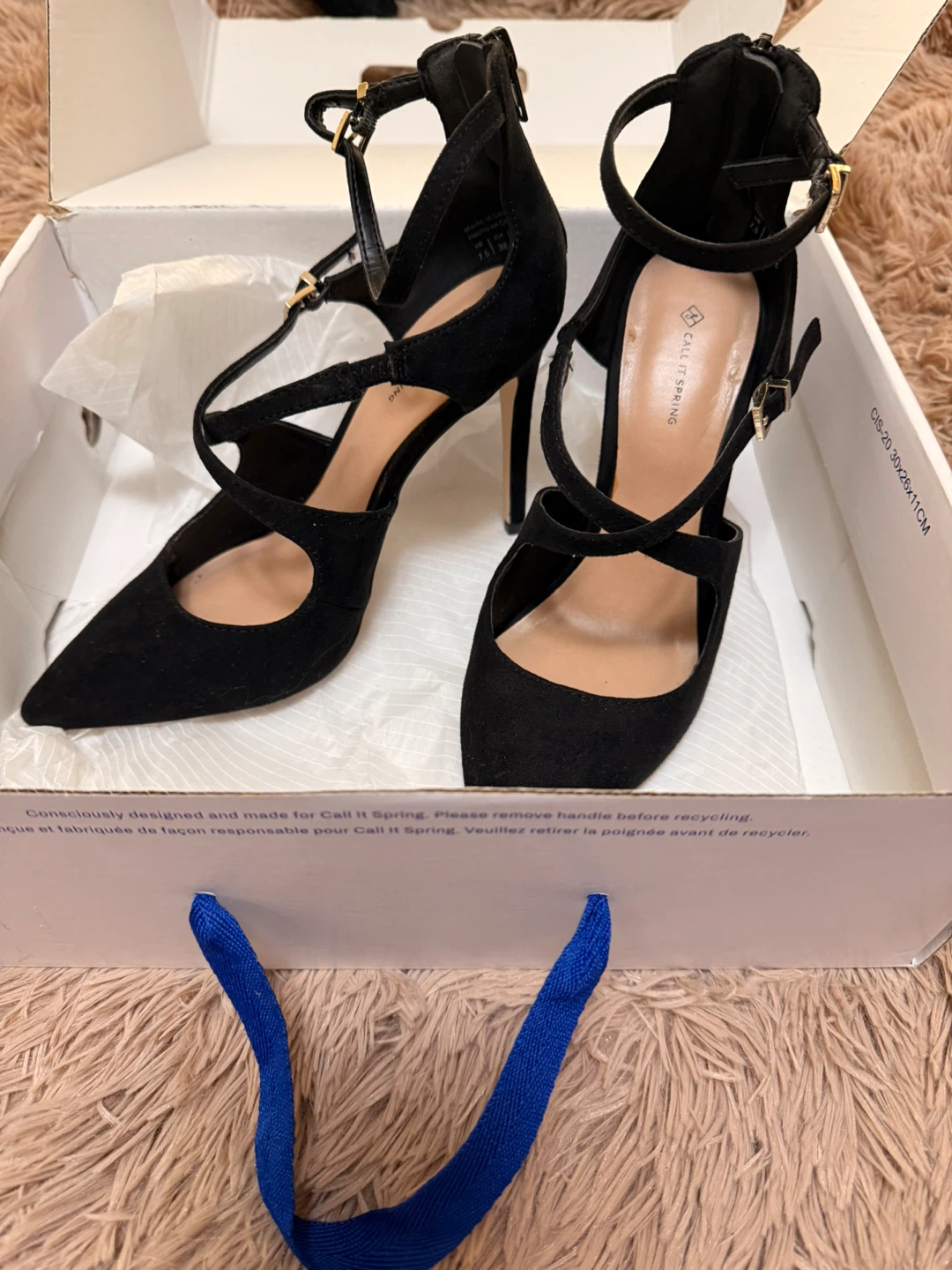 Selling a pair of Call It Spring Frieda black heels in a size 7.5. They come in the original box!