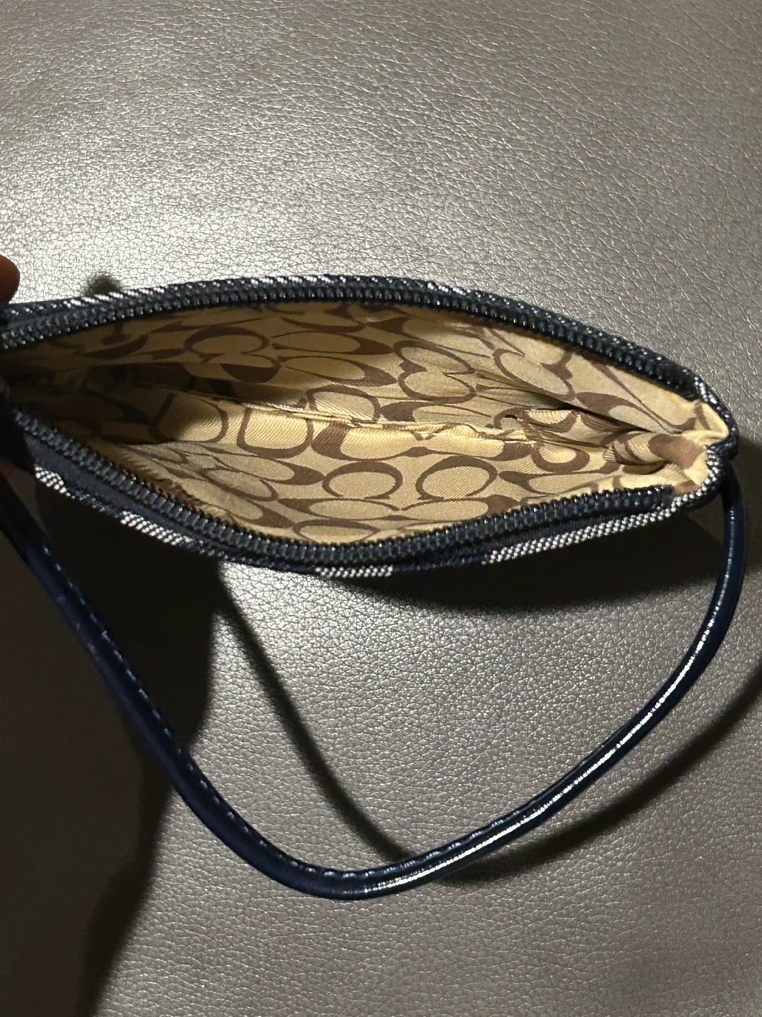 29A cute Coach wristlet to keep your essentials in! The wristlet is in great condition and has the classic Coach logo pattern inside.