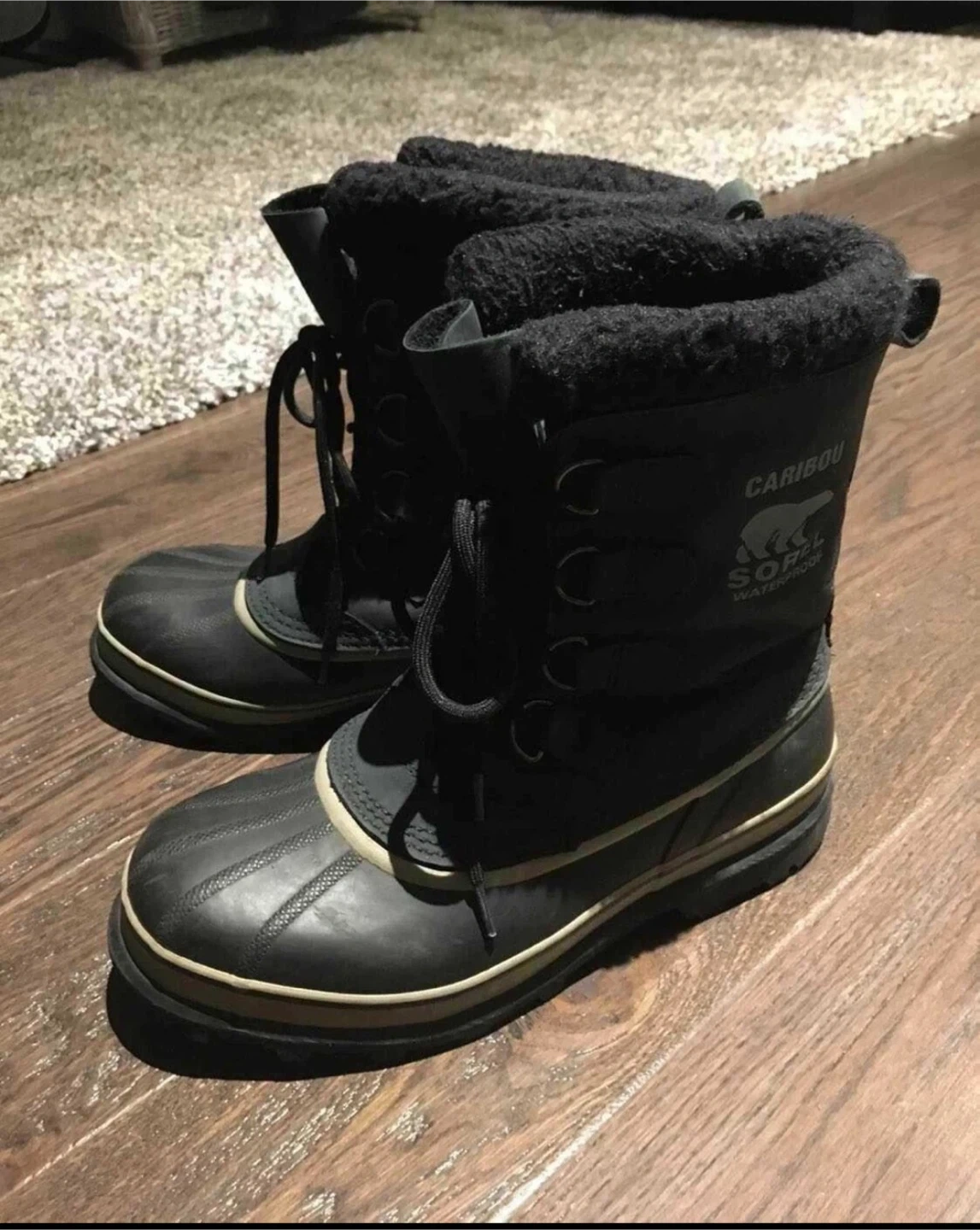 53Size 10 Selling a pair of Sorel Caribou waterproof winter boots! They're super warm and perfect for those cold Canadian winters. Great for snow and slush, these boots will keep your feet dry and cozy.