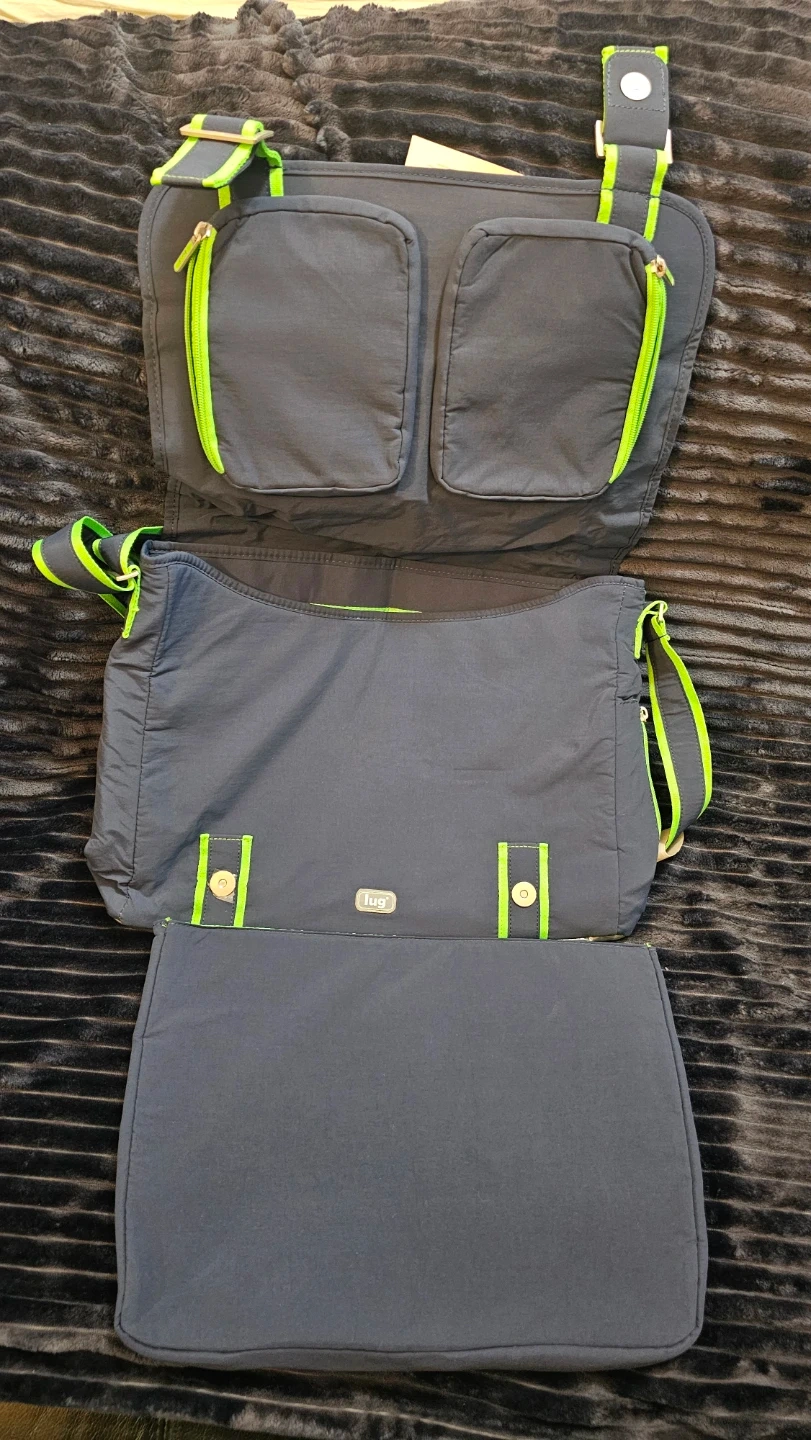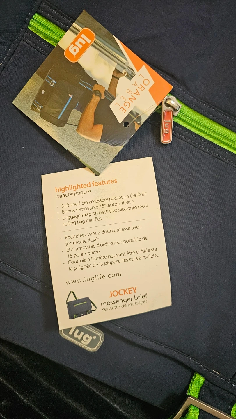 Selling a Lug Jockey Messenger Brief bag in a stylish navy and green colour combo! It's in great condition and ready for a new owner.
