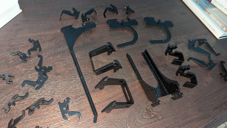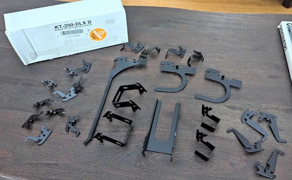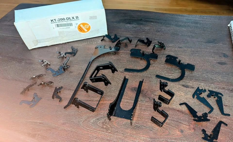 Includes 26 durable, powder-coated steel hooks & brackets for slotted metal pegboard systems.