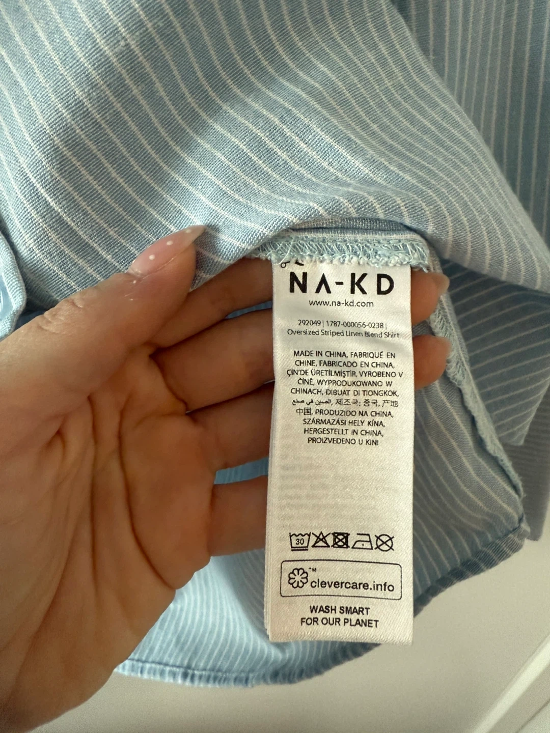 15NA-KD oversized striped linen blend shirt in size 38. It's a lovely light blue colour, perfect for spring or summer