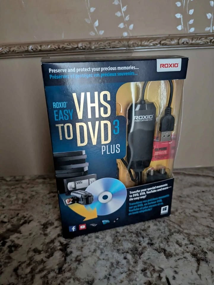 Video capture device and software package designed to convert analog video from VHS, Hi8, V8, or analog camcorders into digital formats like DVD or other digital files.