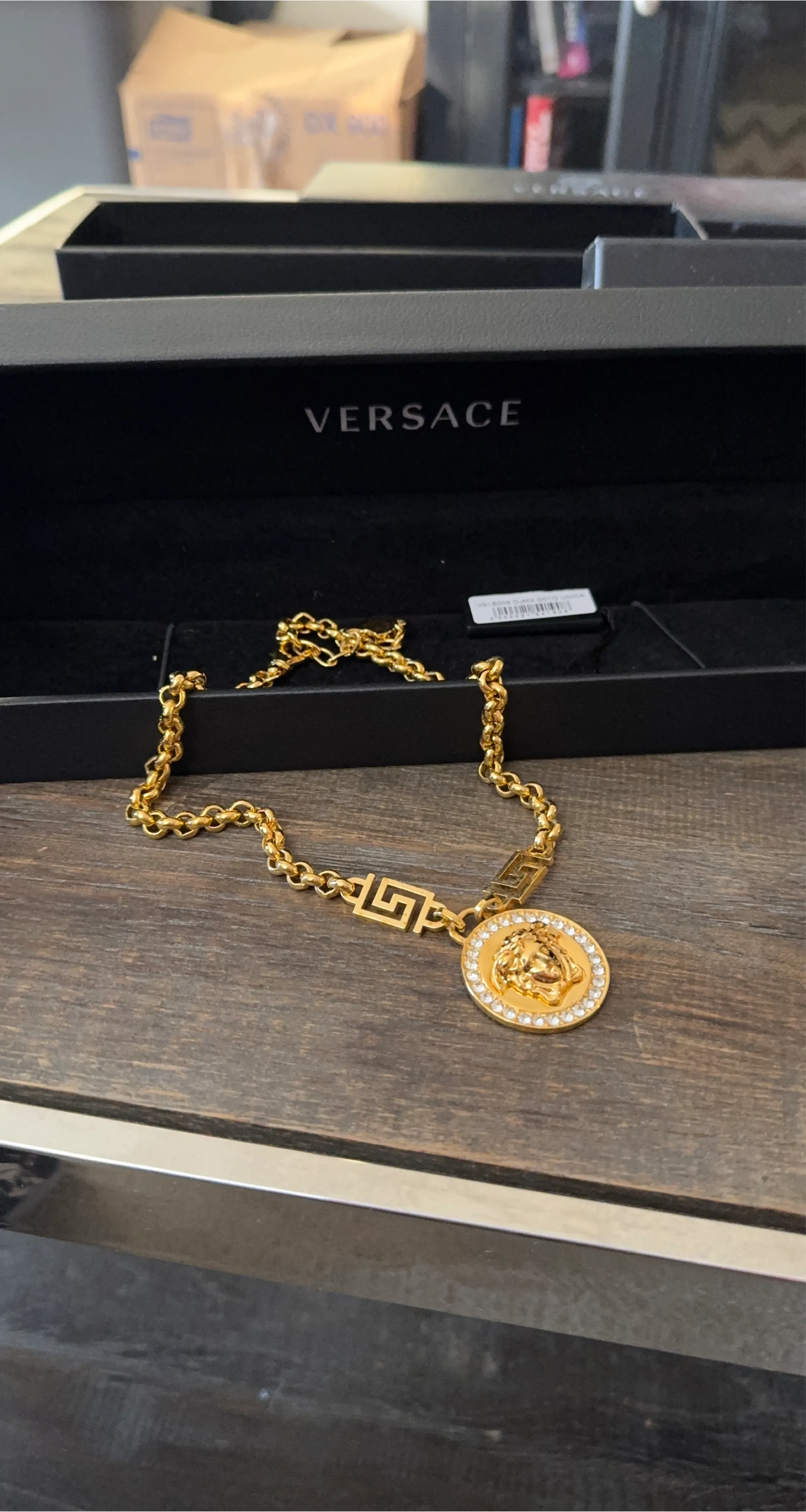 1 / 51 / 5Buy & SellVersace Gold Chain NecklaceVersace Gold Chain Necklace$900Selling a beautiful Versace gold chain necklace! It comes with the original boxConditionLike newBrandVersaceWHERE TO MEETCheck LocationView MapSELLERverifiedJoyWoodbridge1679 reviews1 chats·0 favorites·195 viewsSEND CHAT TO SELLERHi Joy! I’m interested in your listing.Hi Joy! I’m interested in your listing.Get the Karrot app to chatSign In to chat
