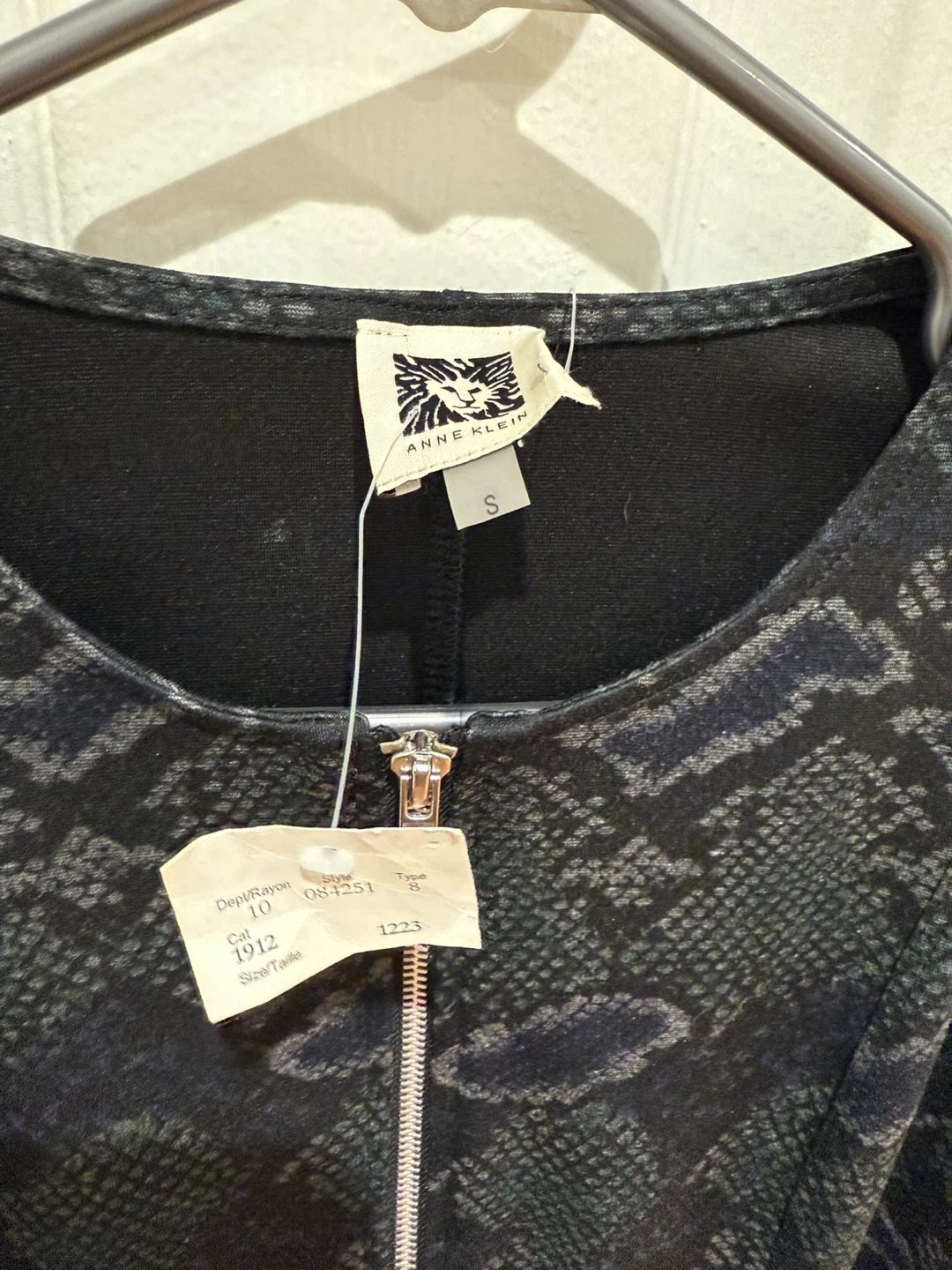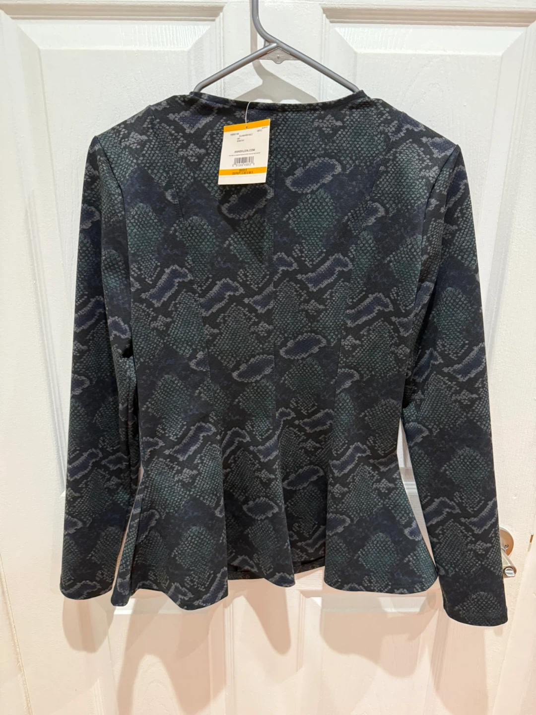 370Women's Anne Klein zip-up blouse. Size small. Snakeskin print. Long sleeves. Fitted waist. Peplum hem.