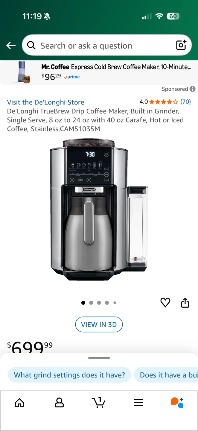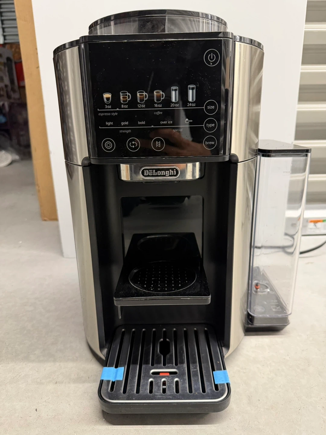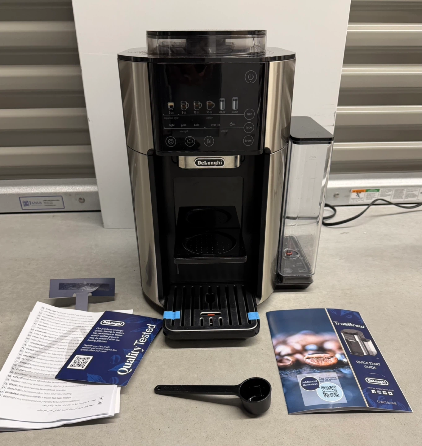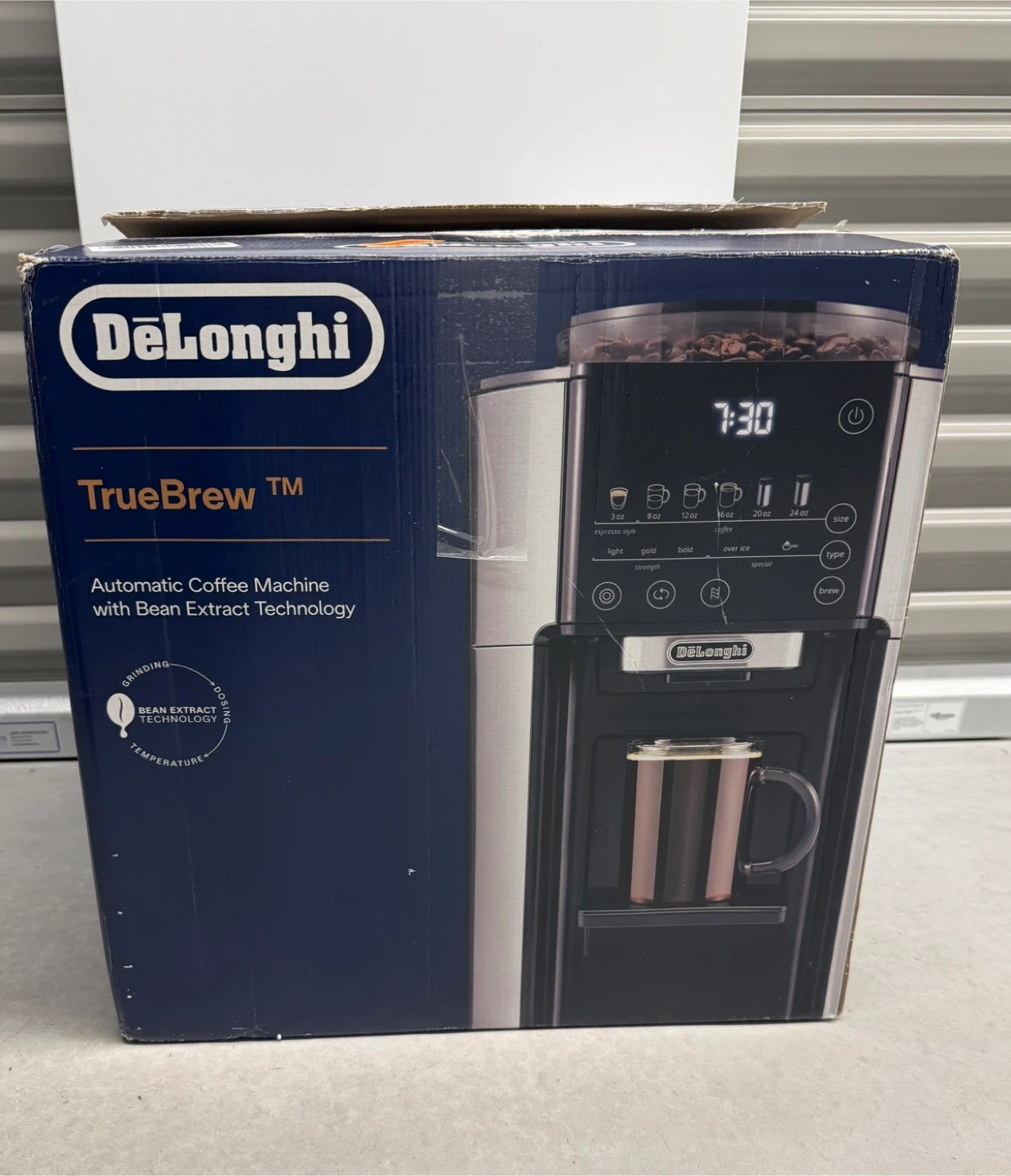 131Item Name: De'Longhi TrueBrew Drip Coffee Maker, Built in Grinder, Single Serve, 8 oz to 24 oz with 40 oz Carafe, Hot or Iced Coffee, Stainless,CAM51035M Pickup Location:459 Eastern Ave, Toronto, ON M4M 1C2 Condition: Used, and cleaned. The coffee grounds hopper and water reservoir have signs of use and minor cosmetic marks on exterior. What’s Included: - DeLonghi TrueBrew automatic coffee machine (stainless steel/black) - Removable water tank - Coffee grounds container - Original box and internal packaging - Measuring scoop - Quick start guide, paperwork, and manual Pickup Only. No delivery will be provided. Retail Price: $699 plus taxes.