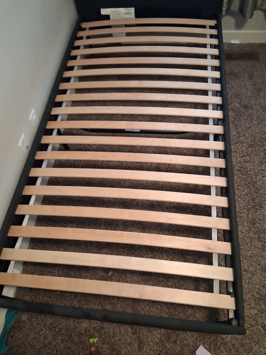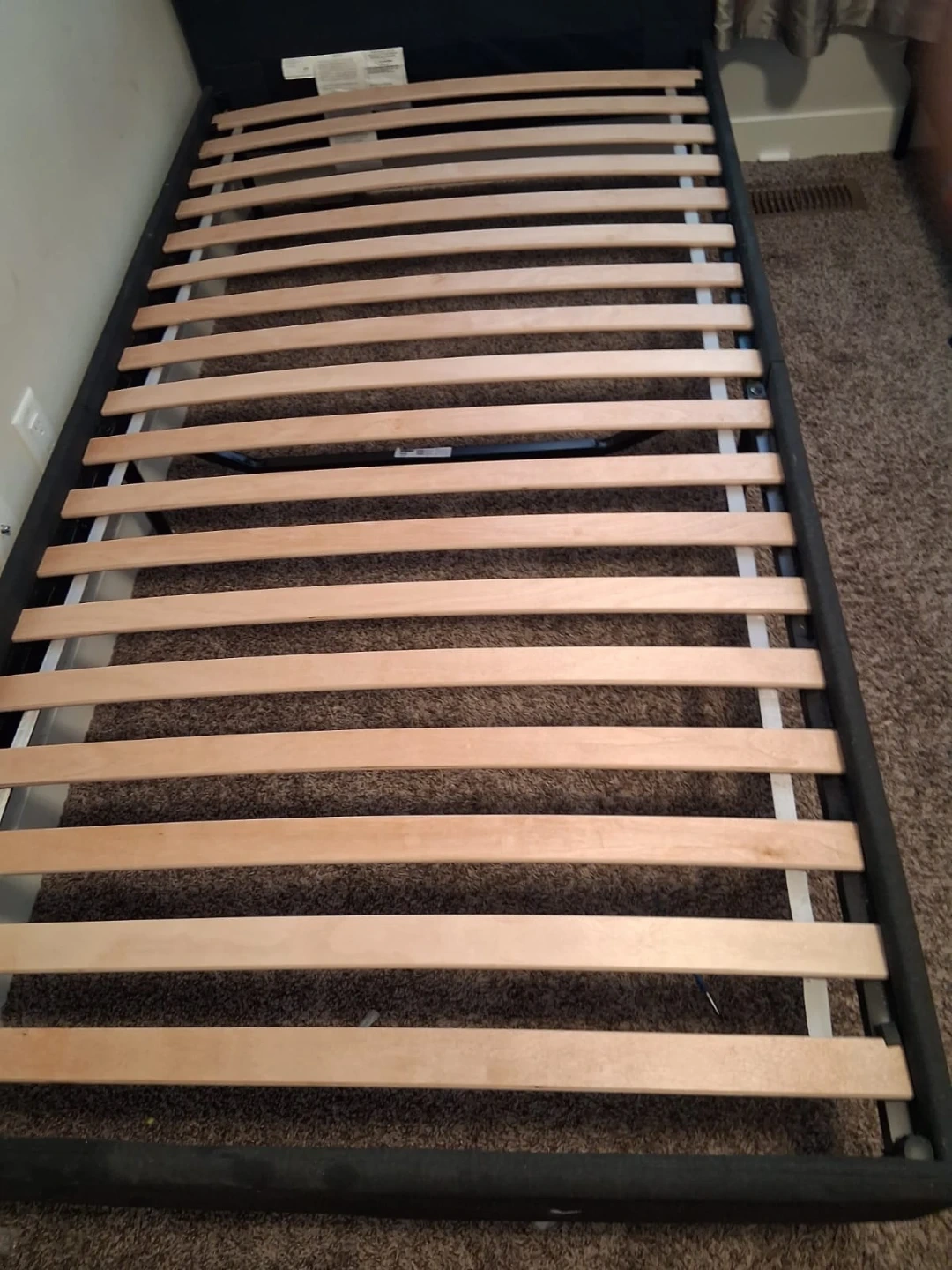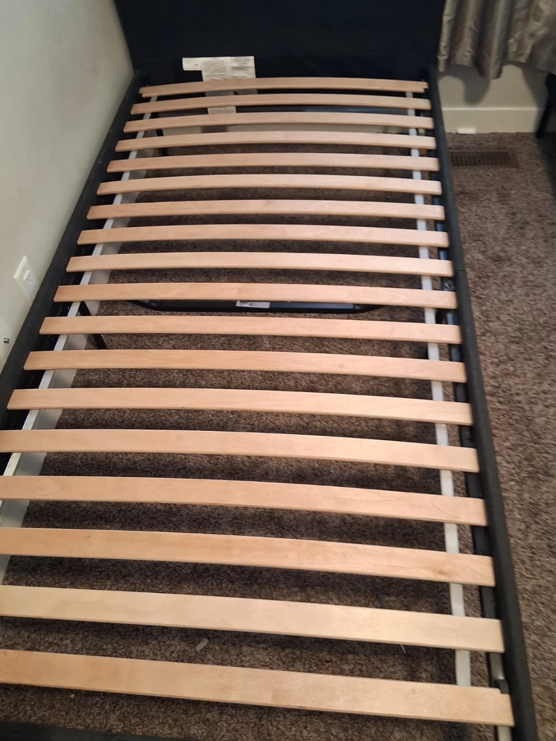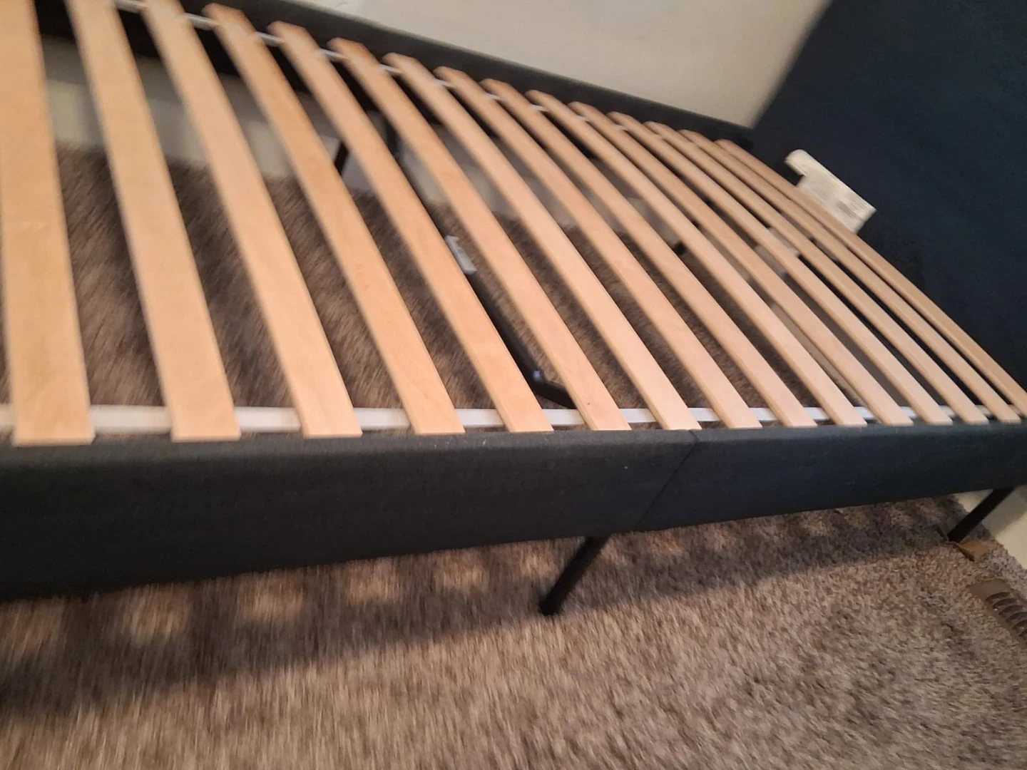 Selling 2 single bed frames in good condition. It features a black frame and wooden slats. Perfect for a small bedroom or guest room! $90 for 1 and $180 for both