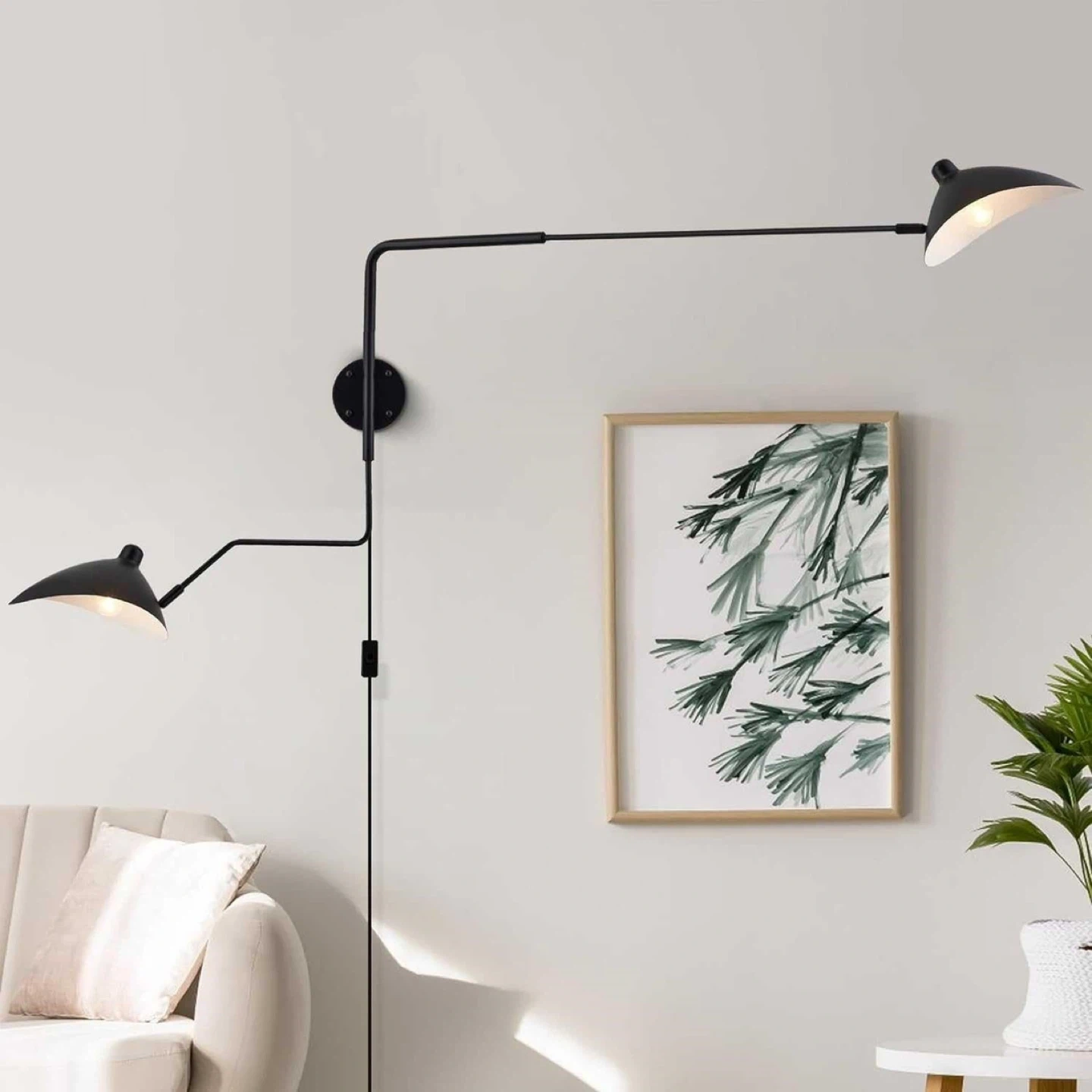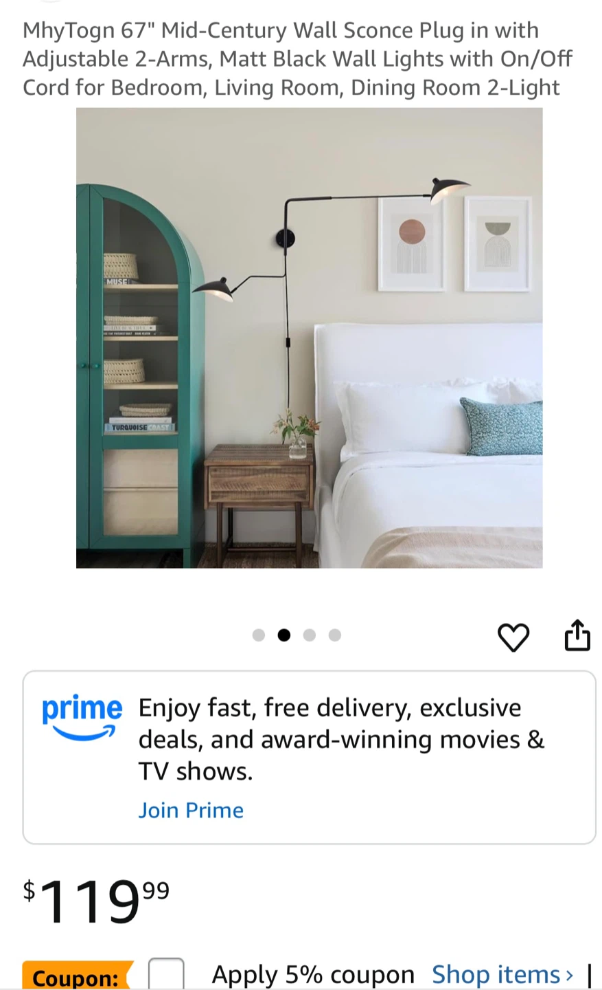 Looking to brighten up your space? I'm selling a MhyTogn 67" Mid-Century Wall Sconce. It's a plug-in with adjustable 2-arms, and features a sleek, matte black finish with hardware