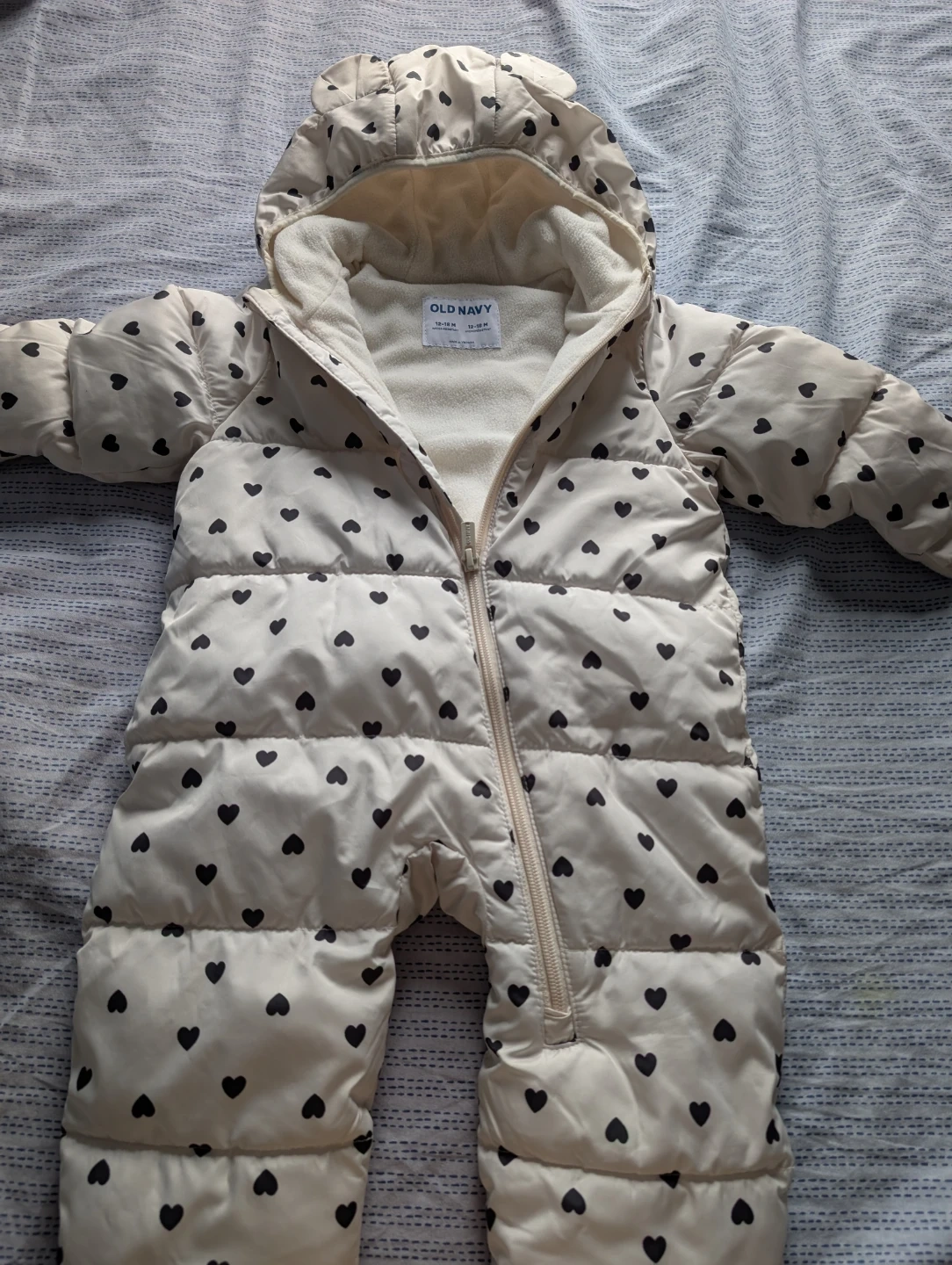 Super cute Old Navy snowsuit for your little one! It's in great condition and perfect for keeping them warm during the winter months.