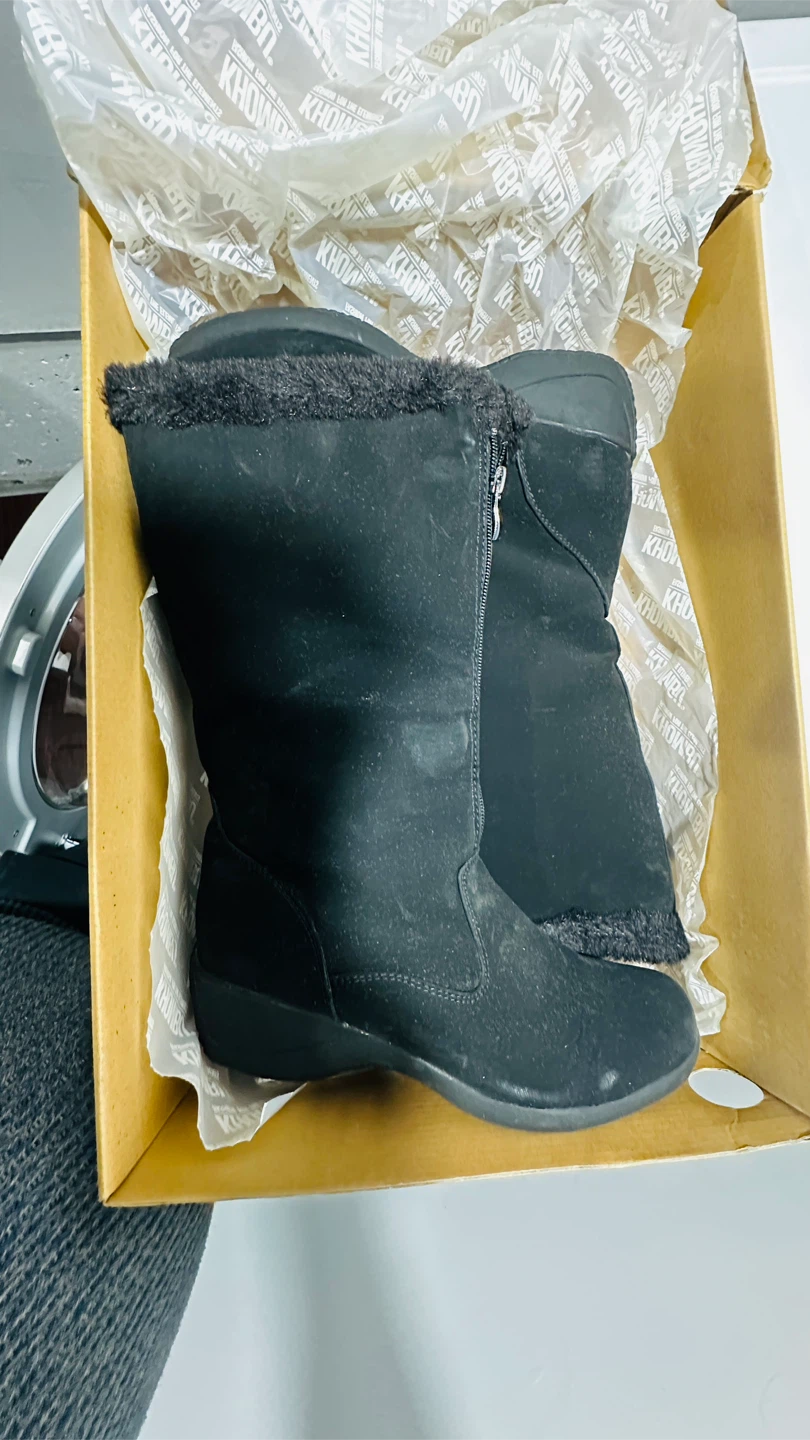Selling a pair of Khombu winter boots in black. They are in good condition and come with the original box. Perfect for keeping your feet warm and dry this winter!