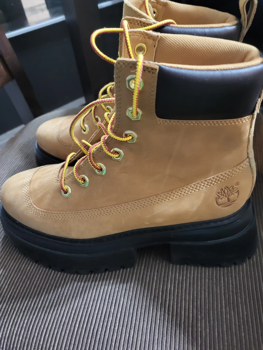 These Timberland platform boots are in great condition and ready for a new home! They're a women's size 7.5 and feature a stylish lug sole. Perfect for adding a bit of height and edge to any outfit
