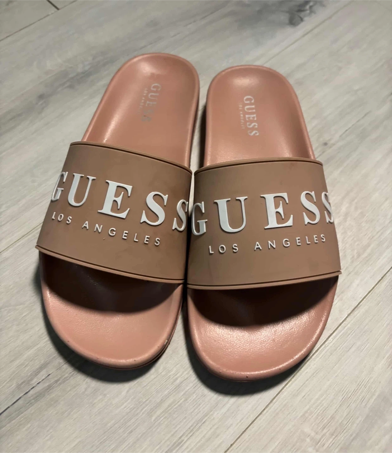 Selling a pair of pink GUESS slides in excellent condition. Only worn a couple of times — super clean and look almost new! Stylish, comfy, and perfect for everyday wear or lounging.