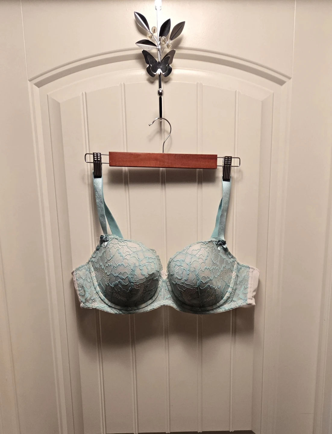 Selling a Voglio bra in size 44B. Mint green lace design. A nice bow detail adds a touch of elegance. No try ons or returns. Dog friendly smoke free home. Cross-posted.