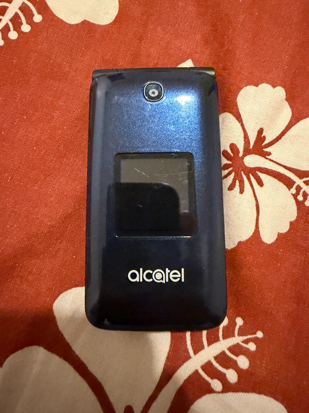 Alcatel Go Flip 4044 - This phone is in great condition, with some scratches on the front cover of the phone, as well as the bottom bottom of the phone having a mark on it. All functions have been tested and are confirmed to be working. This phone is carrier locked to MetroPCS, meaning that any other sim card won’t work in this phone unless if it’s a MetroPCS or Metro by T-mobile SIM card. Other than that, this phone is reset and is ready to go. IMEI shown in the 9th photo. Charging cable included. (Price Firm)