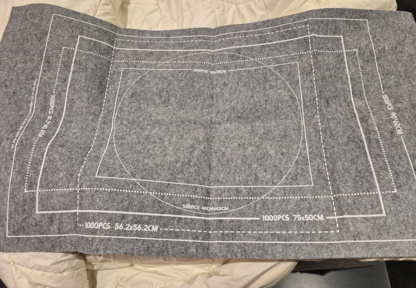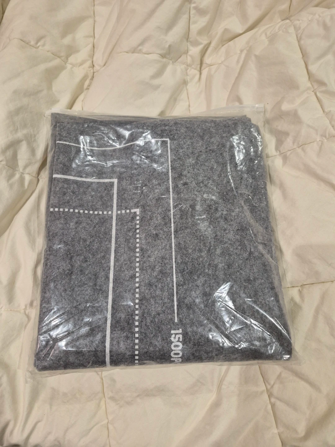 This is a jigsaw puzzle mat roll-up pad, perfect for keeping your puzzles organized! It's made of felt and can accommodate up to 1500 pieces. This is has NEVER been used