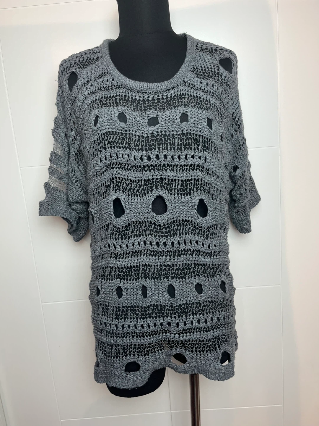 Selling a Bellissima Fashions knit top in a lovely grey colour! It's a size L/XL and has a unique, stylish design. Perfect for layering or wearing on its own!