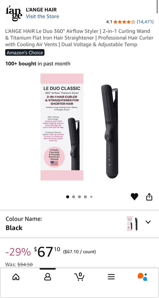 L'ANGE HAIR Le Duo 360° Airflow Styler | 2-in-1 Curling Wand & Titanium Flat Iron Hair Straightener | Professional Hair Curler with Cooling Air Vents to Lock In Style | Dual Voltage & Adjustable Temp (Black)
