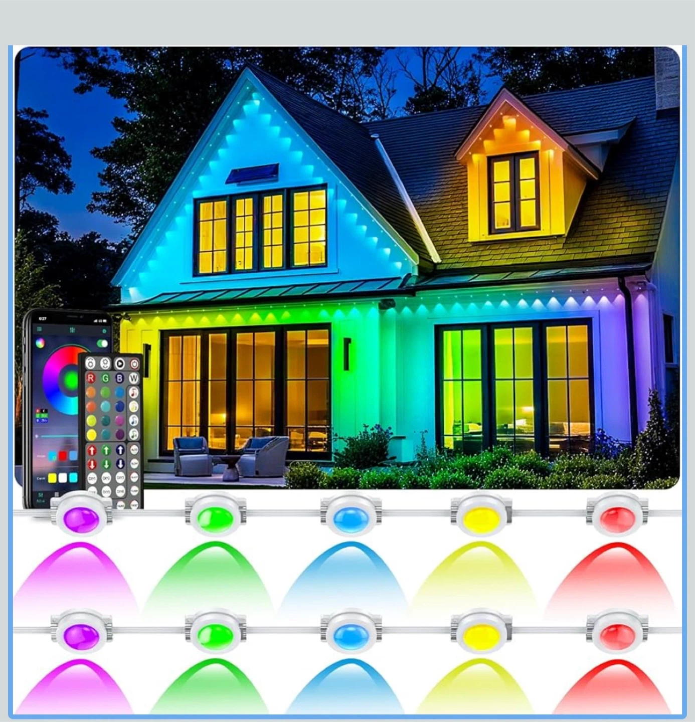 150FT Permanent Outdoor RGB Lights - IP67 Waterproof with Smart App Control Remote,DIY Scene Modes, Music Synchronization,Eaves Lights for Garden Decor,Deck,Christmas (150FT)