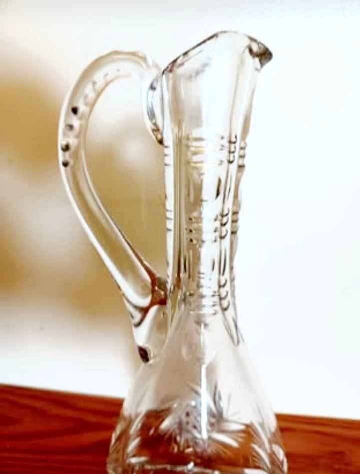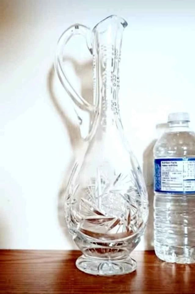 65Vintage Mid Century, Rare Crystal Hand Cut Pinwheel Lead Crystal Belgian Pitcher The Base is Decorated with a Star Cut Design Mint Condition , no chips or cracks Please check out my other rare collectibles!