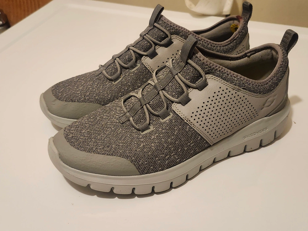 Selling a pair of Skechers Go Walk Arch Fit sneakers in a nice gray colour! They are in great condition and are a size 9. Perfect for everyday wear or light exercise !