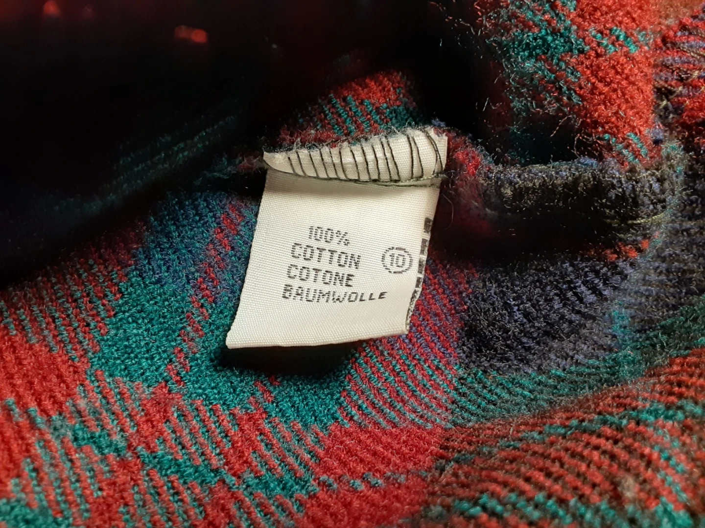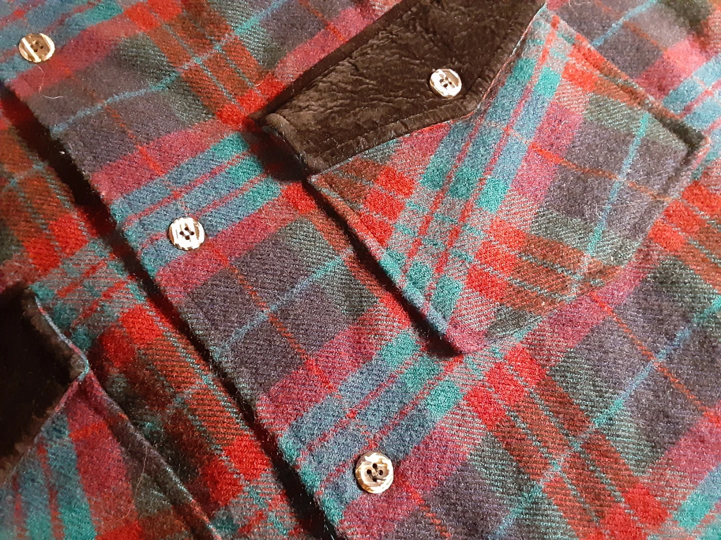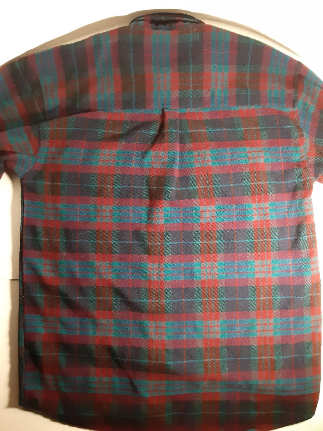 Rabbit brand, large(on the side of XL(see images for measurements)) plaid pattern, flannel long sleeve shirt. Button down, comfortable and stylish design with black suede-like pocket/collar accents. Like brand new.