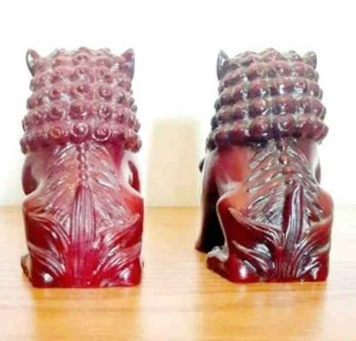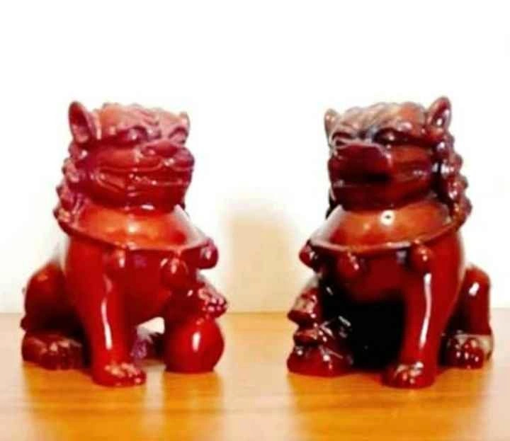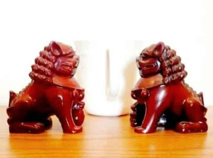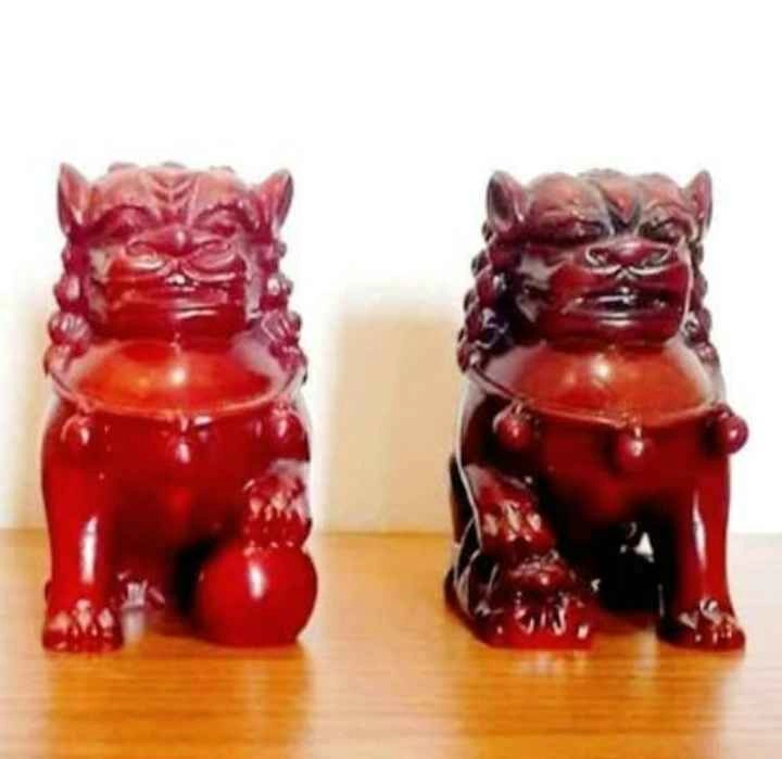 65Vintage, Collectible, Rare, Chinese Art Pair of Chinese Foo Fu Dogs Hand Carved, Red Resin Decorative, Household Height : 8 cm Mug For Size Reference Excellent Condition Please check out my other rare collectibles!