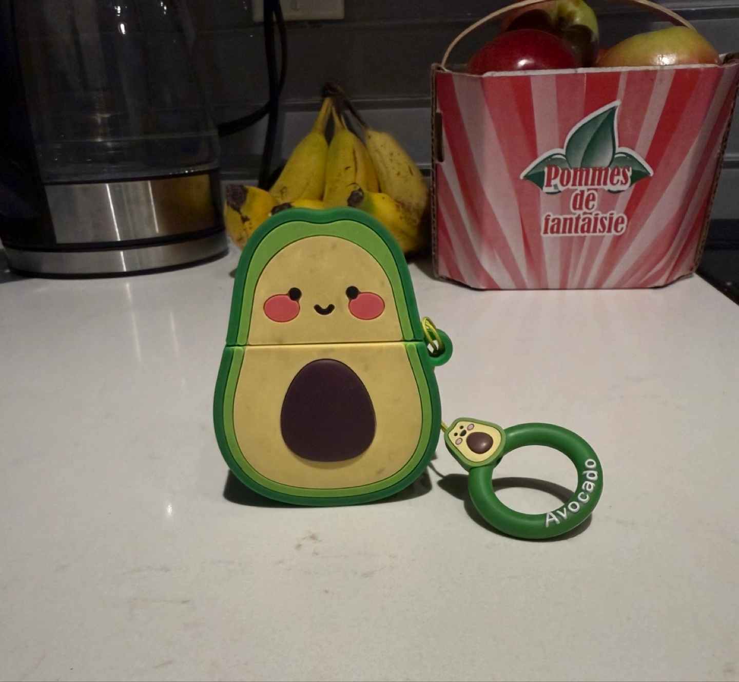 Cute avocado-shaped AirPods case! Comes with a matching avocado ring. Perfect for keeping your AirPods safe and adding a bit of fun to your everyday carry