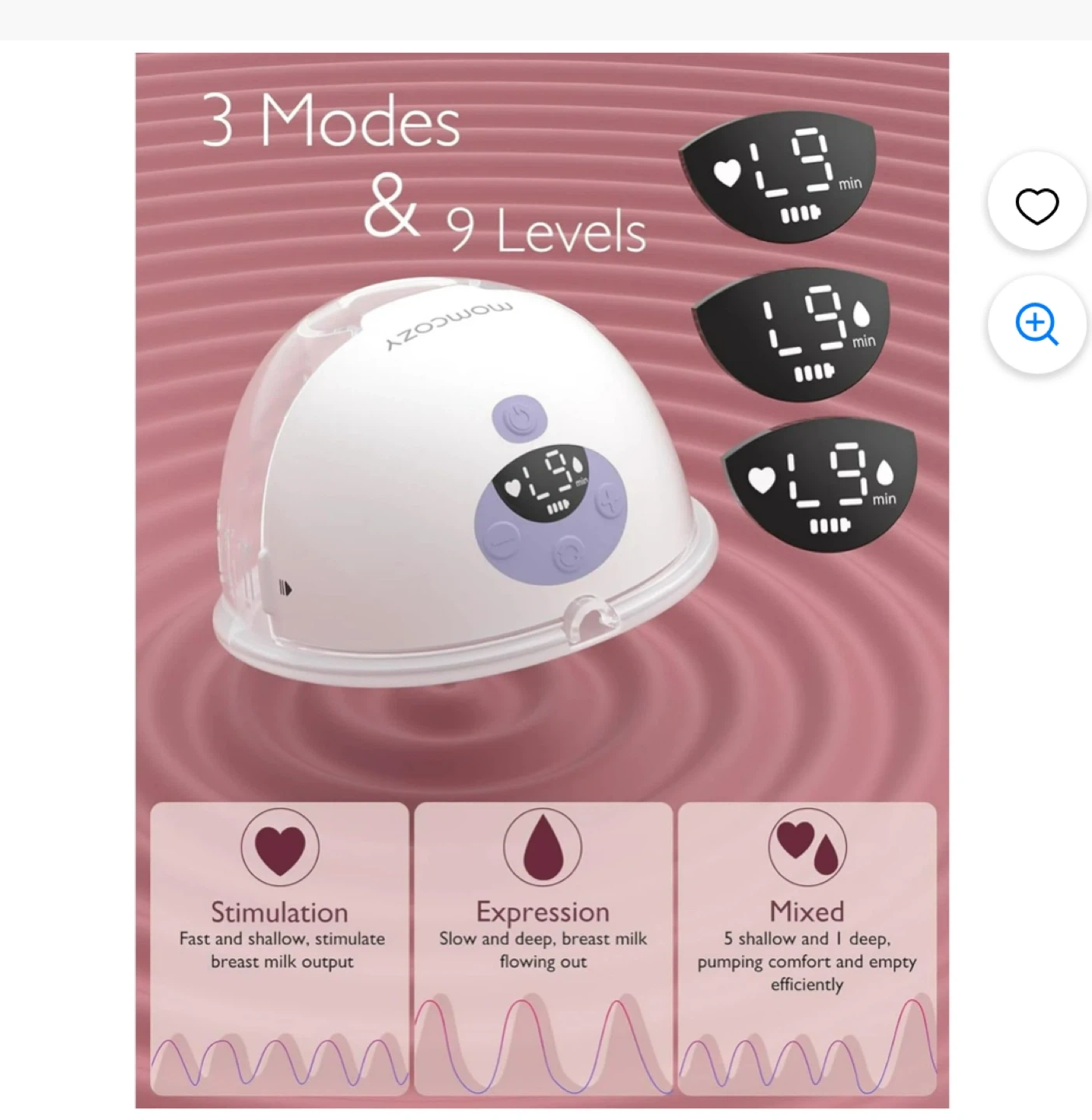 - 3 modes & 9 levels for customized pumping